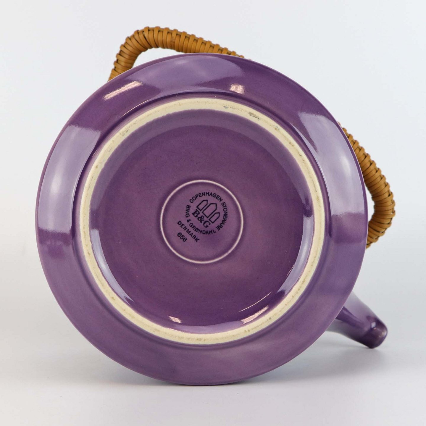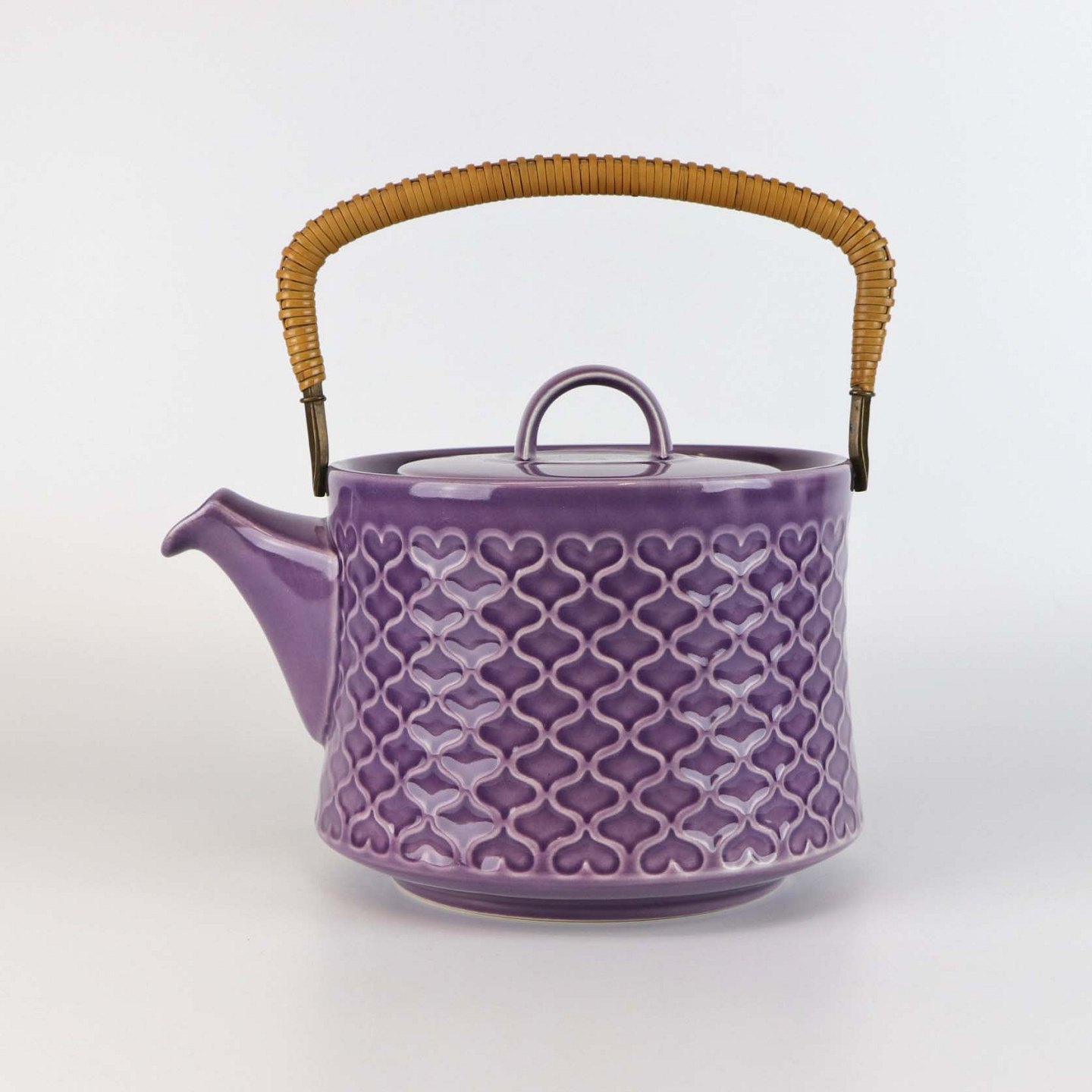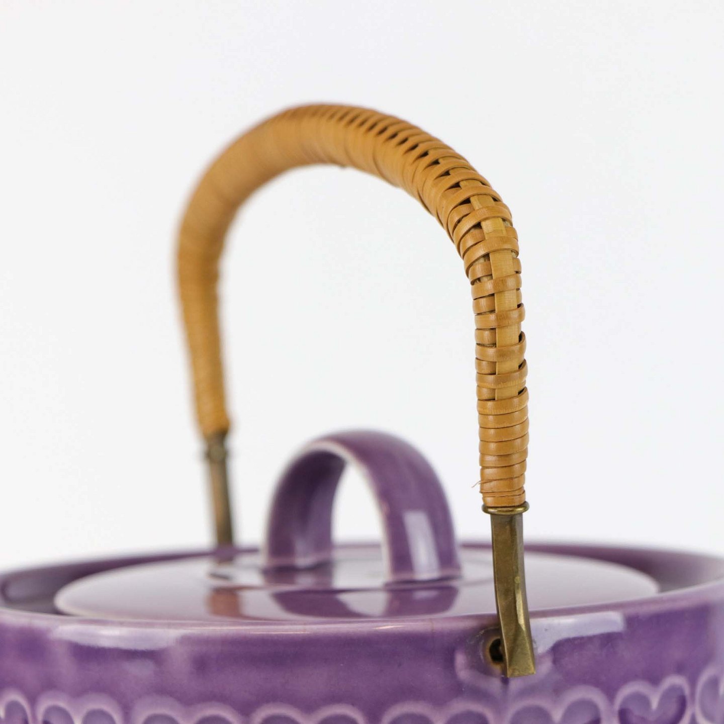 Sjælden tekande i stentøj med hank i messing omgivet af naturflet fra stellet Lilla Cordial no 656