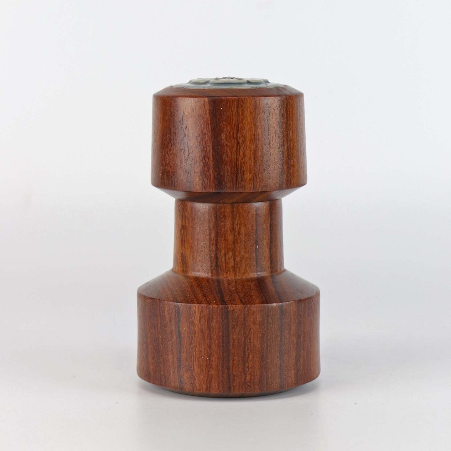 Peberkværn i mørkt træ med top af stentøj fra stellet Azur. Selve kværnen er i metal fra Peugeot Freres Lion