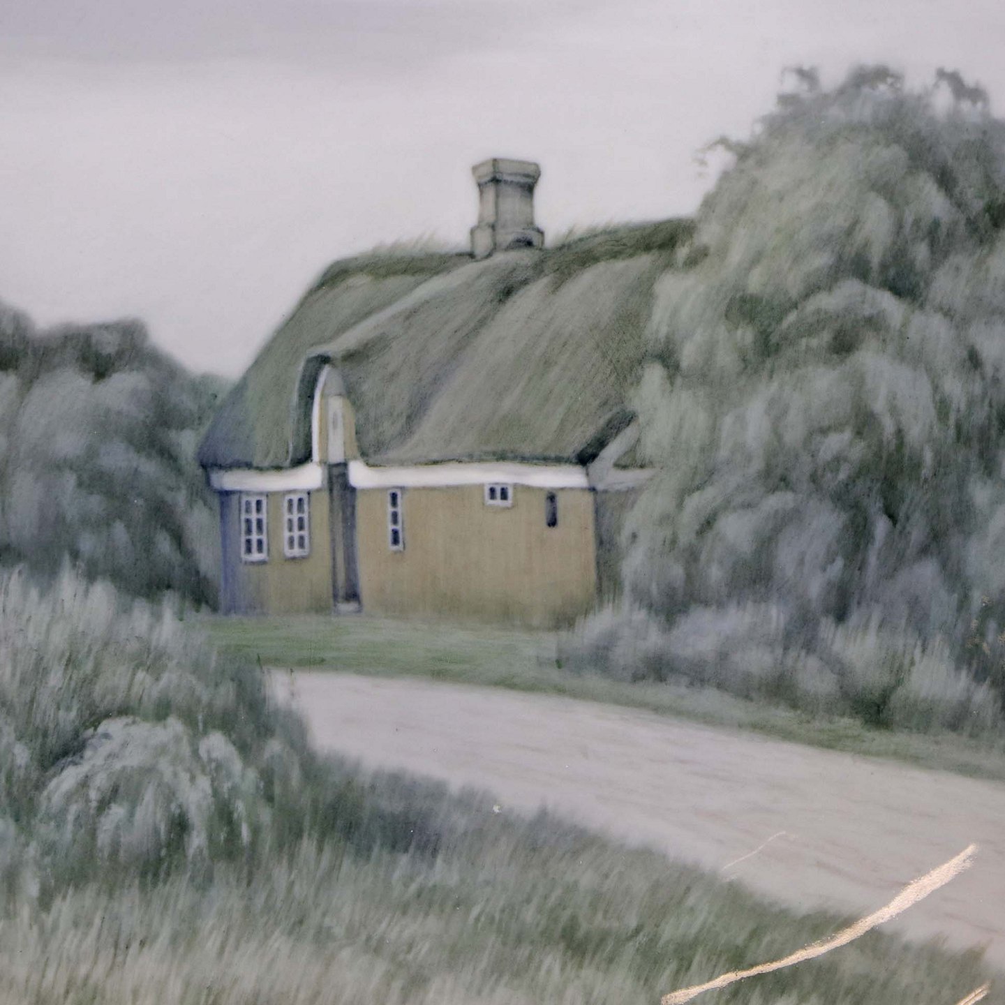 Stor unika platte fra år 1928 med motiv af Grete Mørks hus, Farup