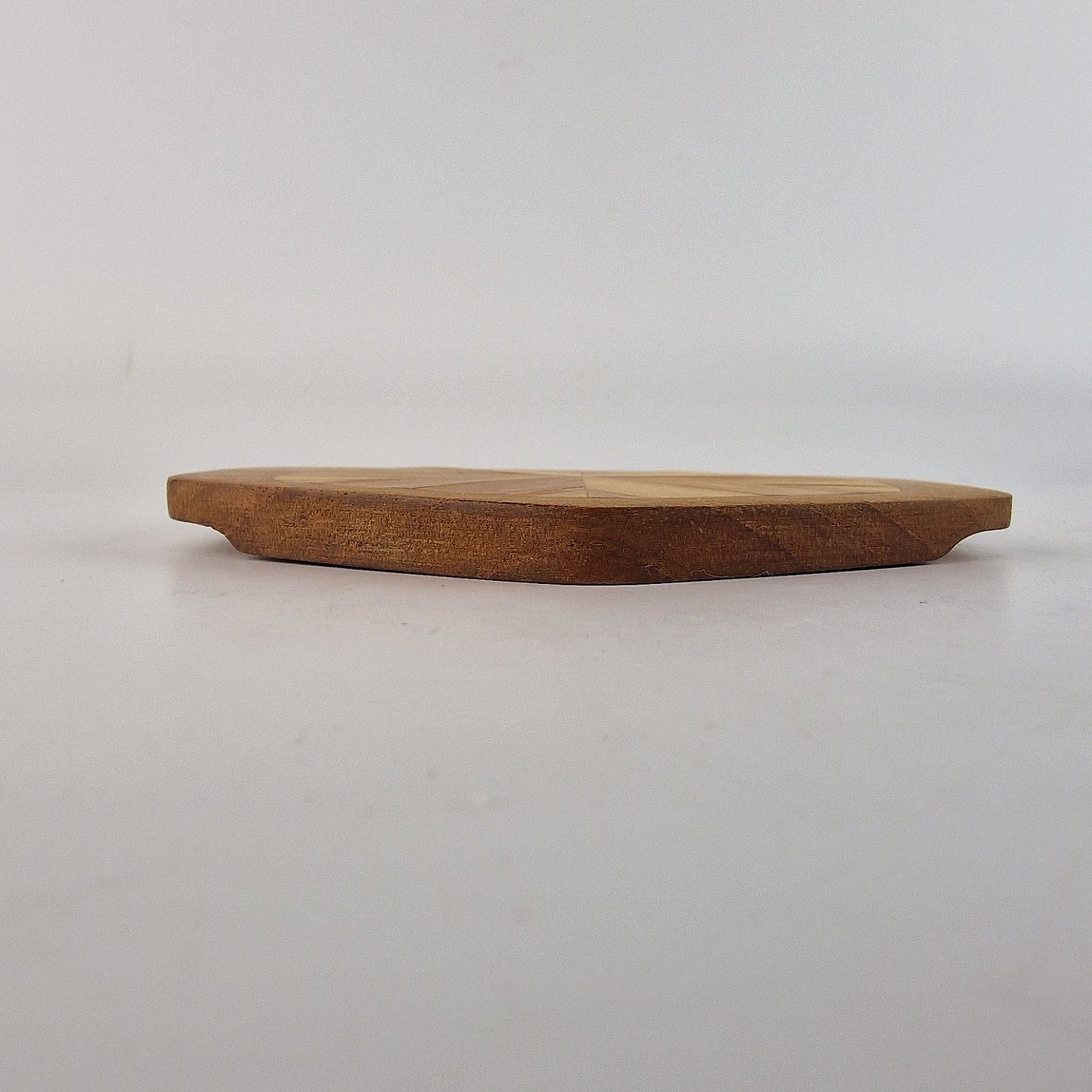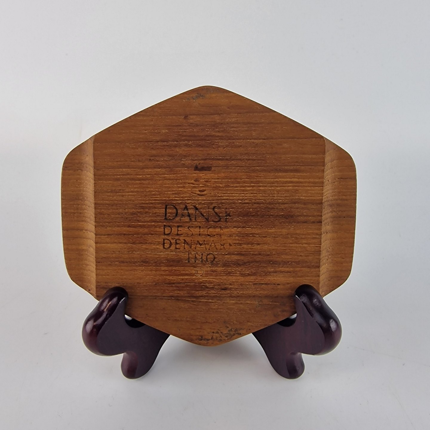 Sekskantet fade og bordskånere af teaktræ og bambus