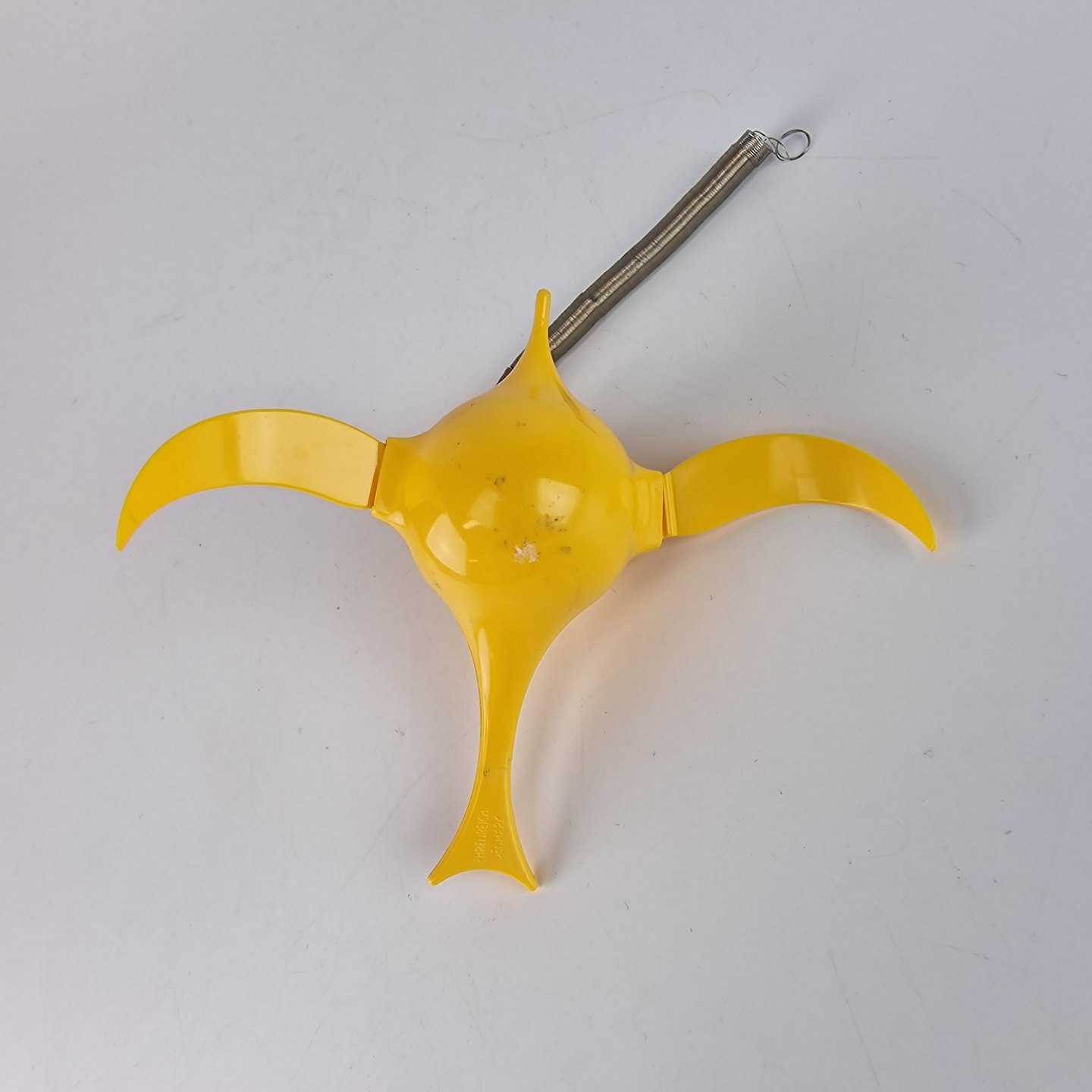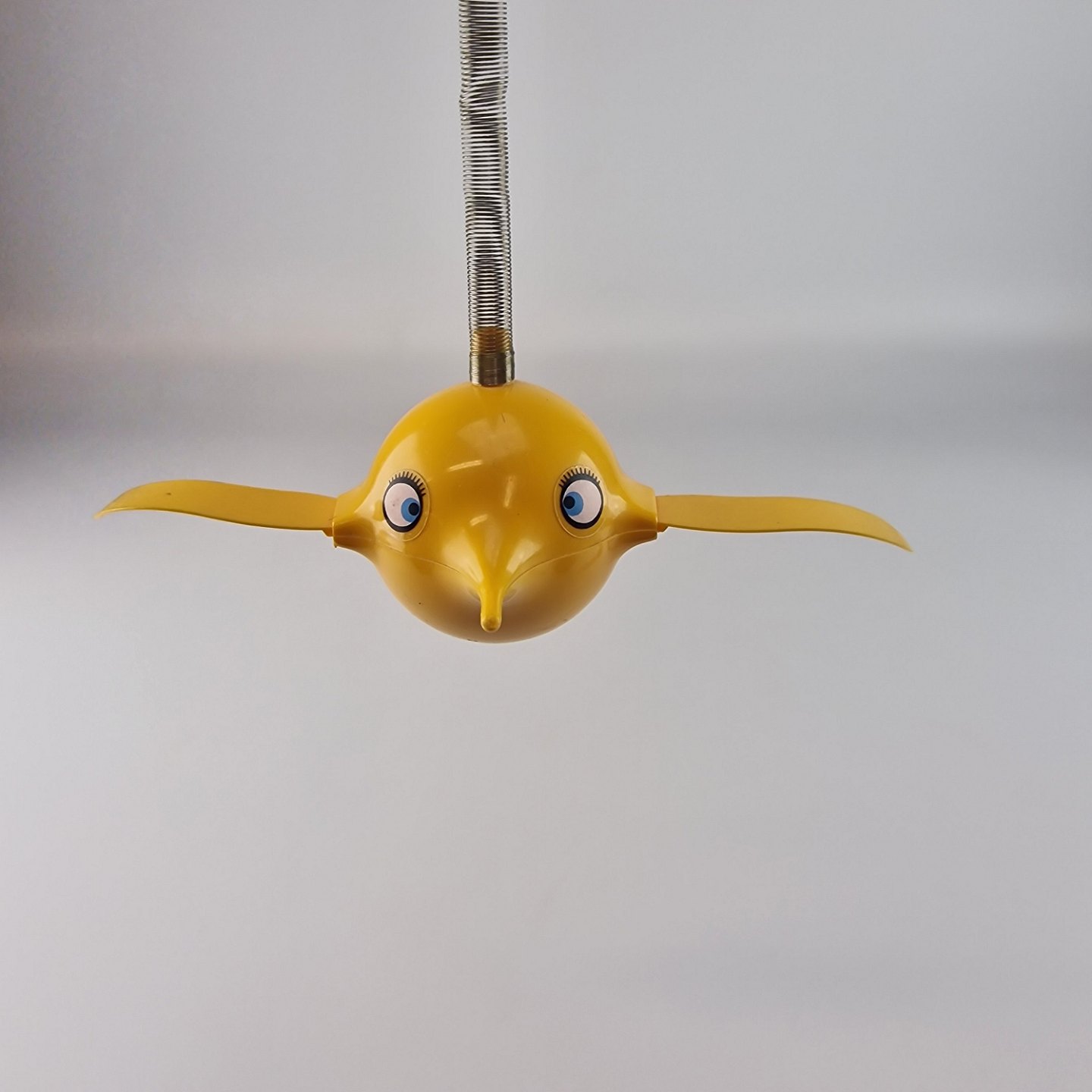 Vintage Hoptimist uro model Busy Birdie i gul plast med metal ophæng