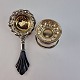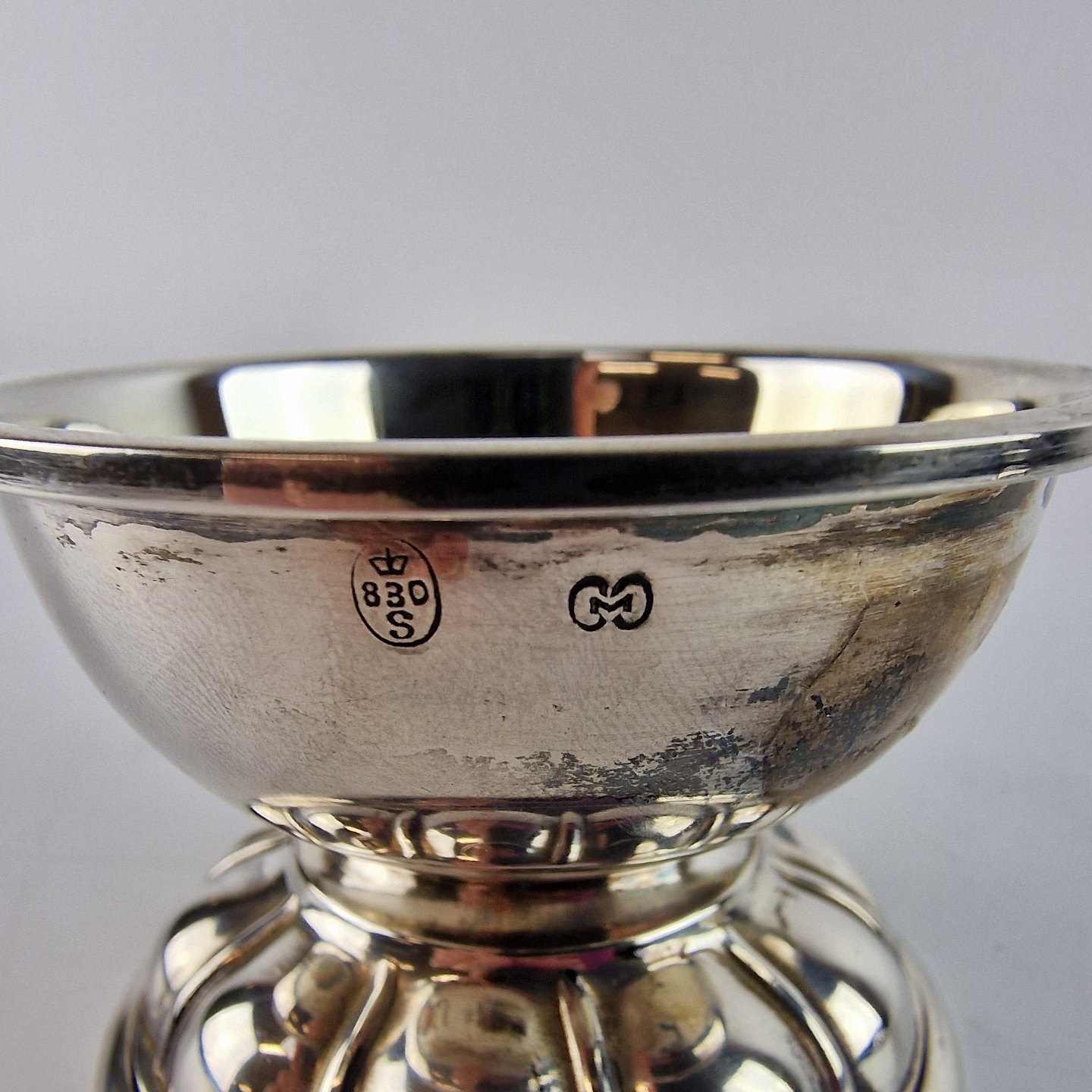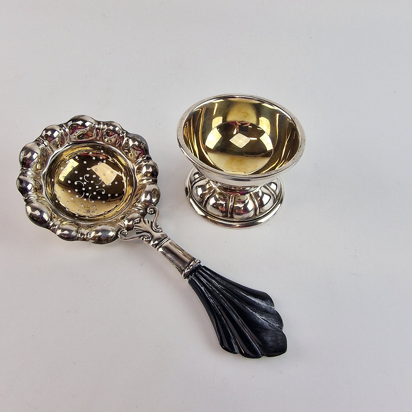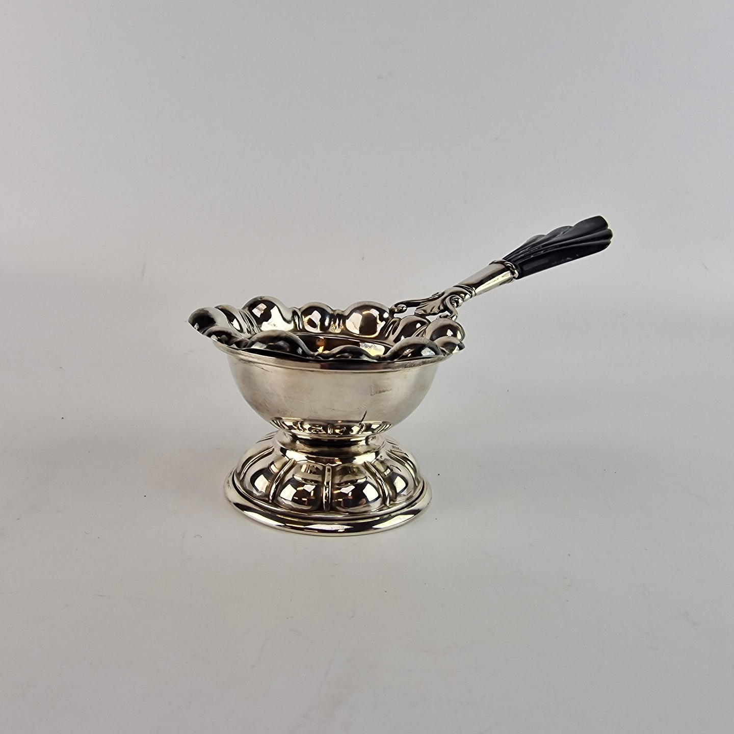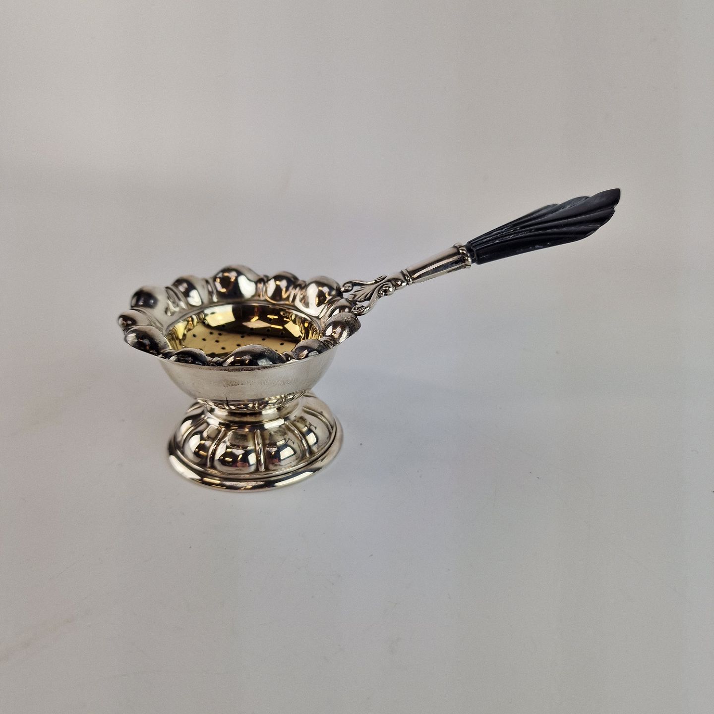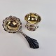 Tesi i sølv og med mange detaljer. Håndtage af sort malet træ.