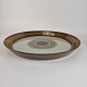 Diskos er af ovnfast stentøj. Stellet er gråt og håndmalet med brune og grønlige detaljer