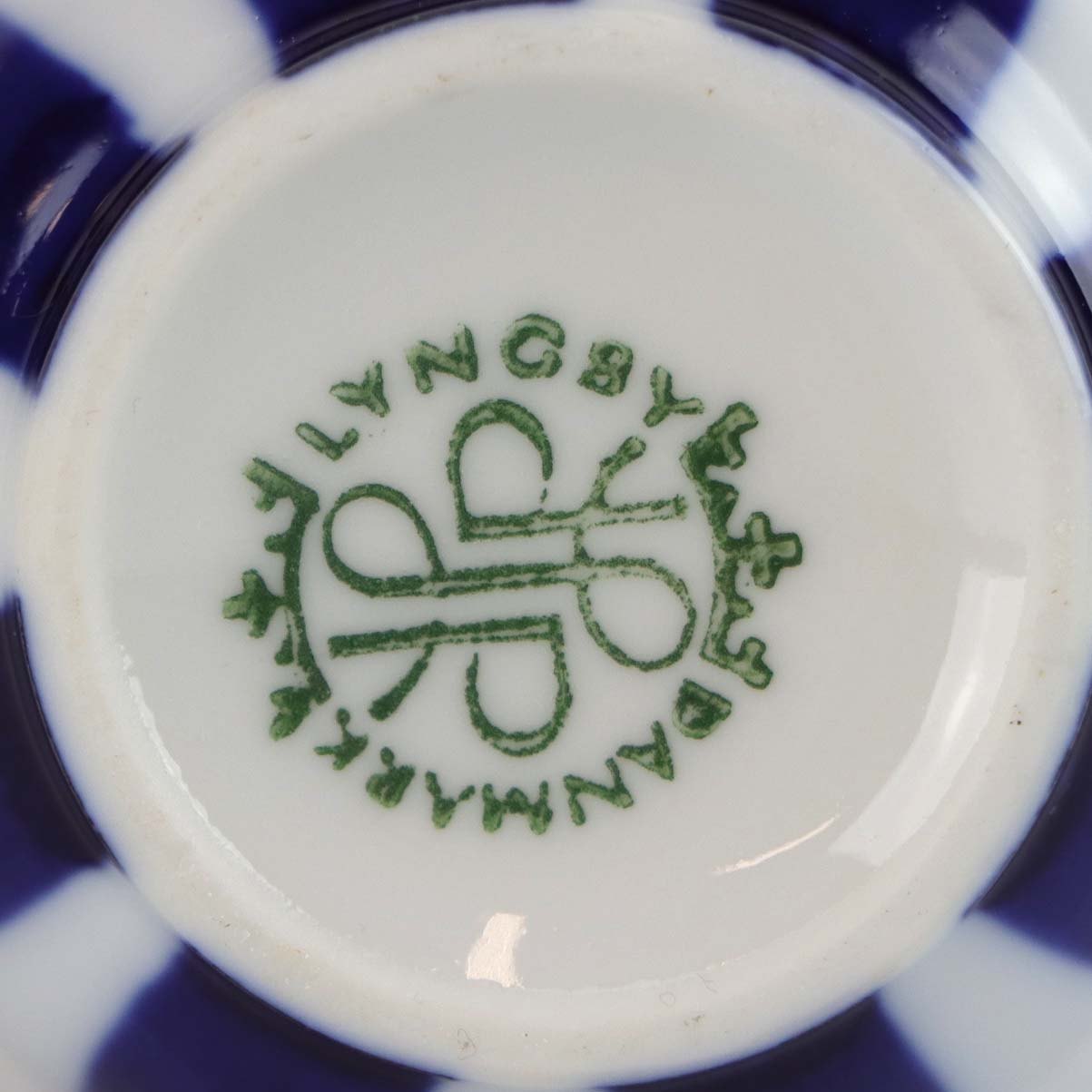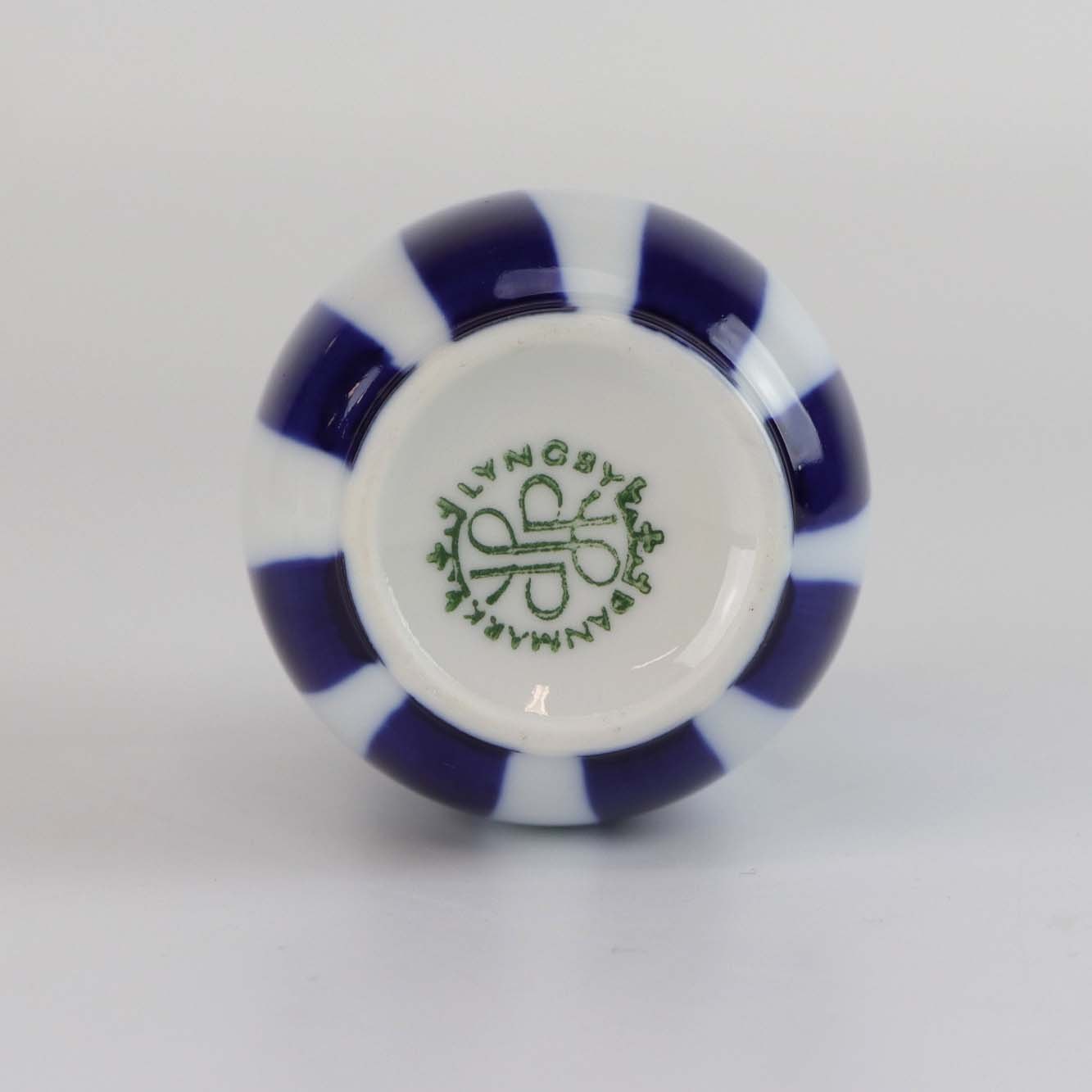 Lille sennepskrukke med låg i porcelæn fra stellet blå striber