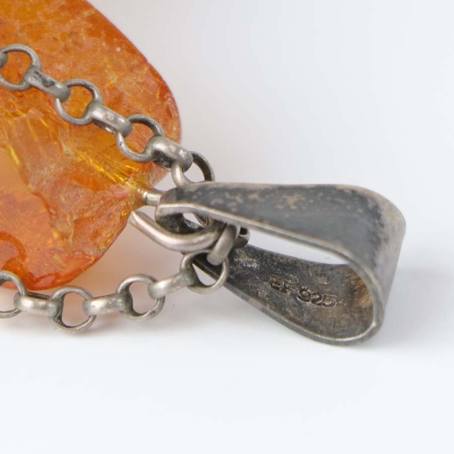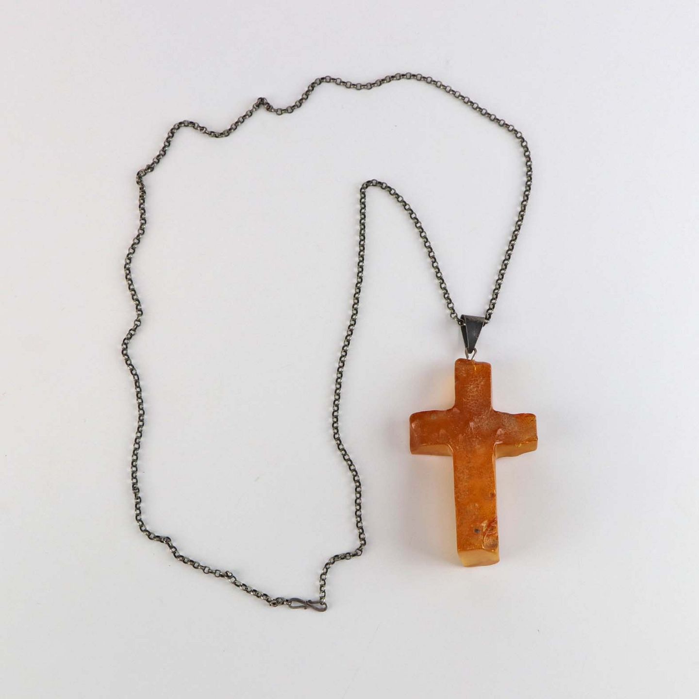 Lang kæde i sterling sølv med stort kors i rav