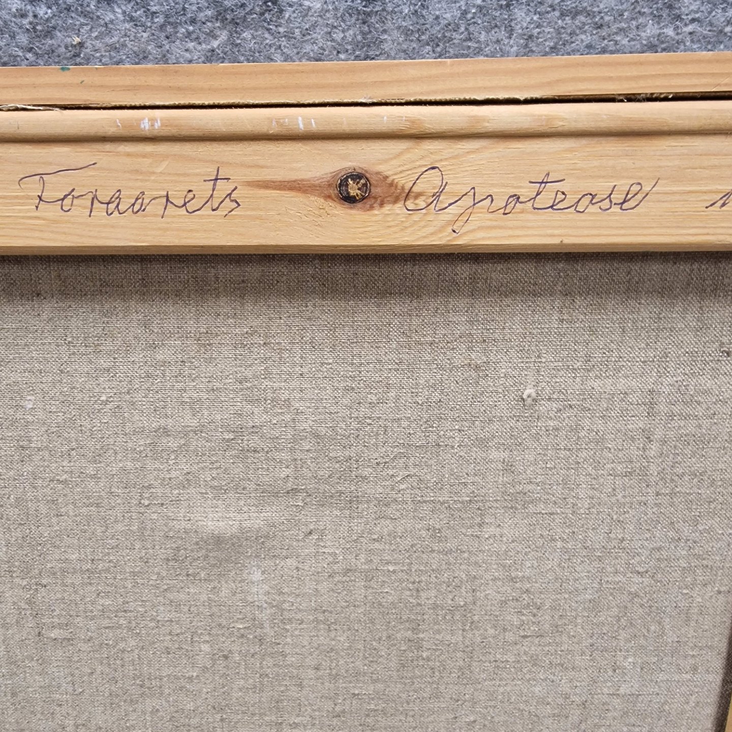 Landskabs maleri på lærred, med motiv af by, vand, skibe og sol. Skitse - udkast til større billede