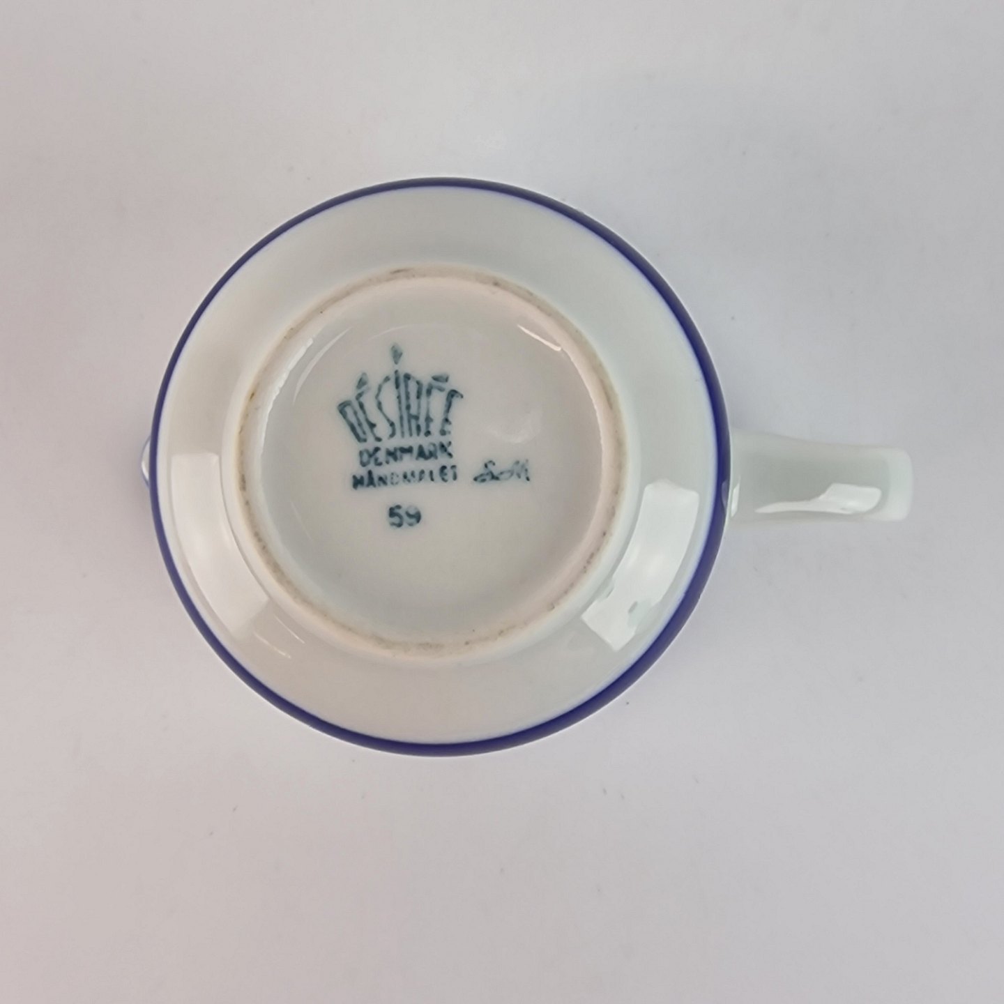 Springtime er af porcelæn, som er glaseret hvidt, malet med blå striber og abstrakt mønster i en lys grøn og blå farve.