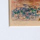 Indrammet litografi med passepartout i sølvmalet ramme. Litografisk tryk nr 35/500 fra år 1976 med portræt af to fiskere ved havneområde.