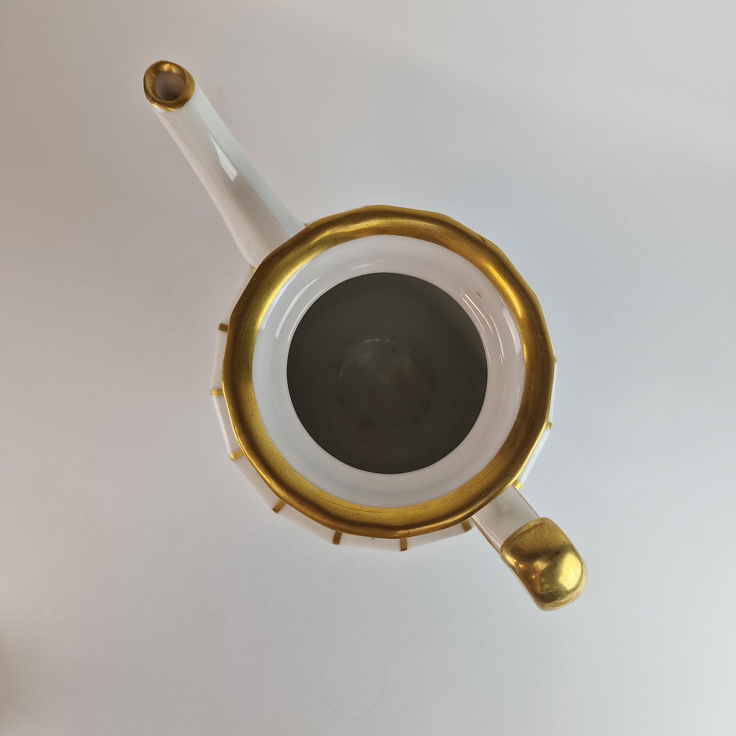 Henriette er af porcelæn og har motiver af små blomsterbuketter og guldstreger på det kantede stel.