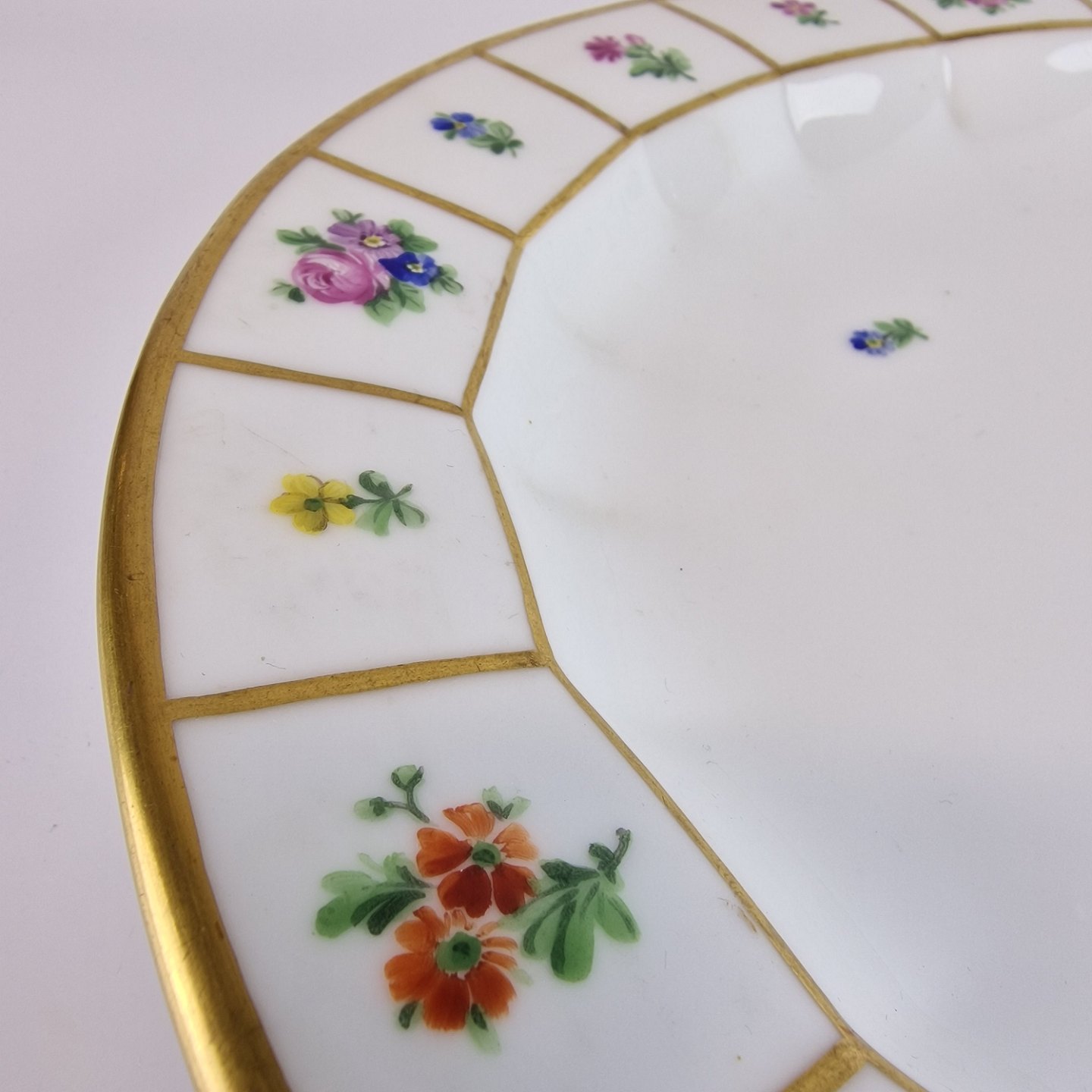 Henriette er af porcelæn og har motiver af små buketter og guldstreger på det kantede stel.
