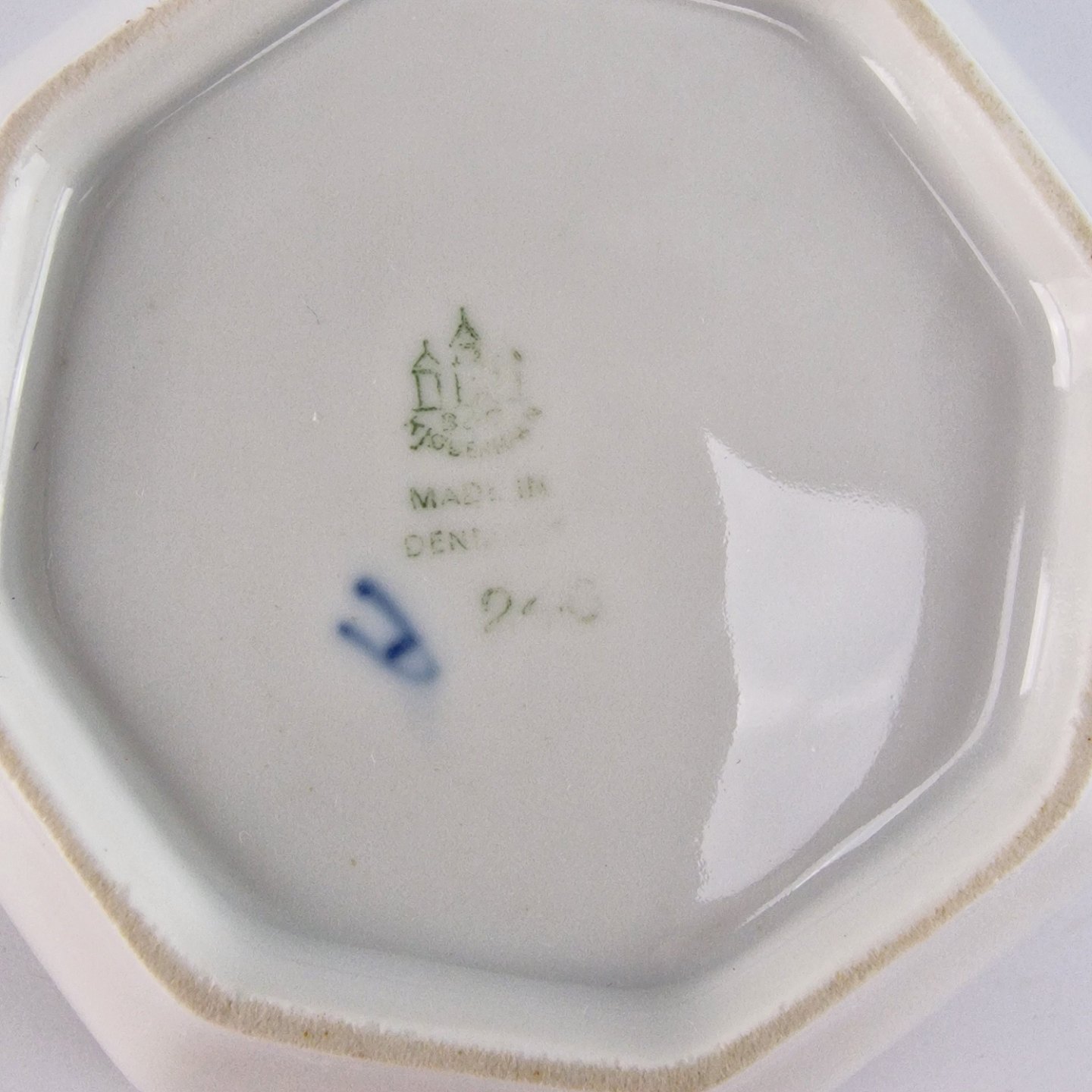 Julerose er hvidt porcelæn med gradueret blå farver, dekoreret med et motiv af en hvid julerose
