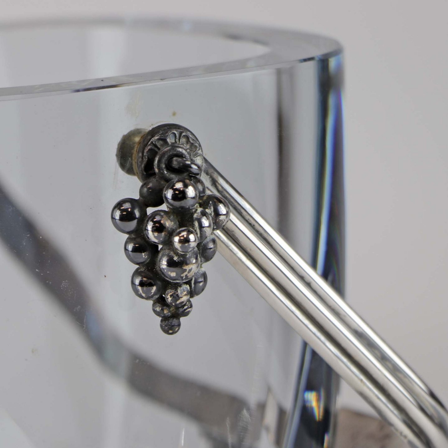 Isspand i klart lyseblåt glas med hank i sølv. Hanken er dekoreret med vindrueklaser