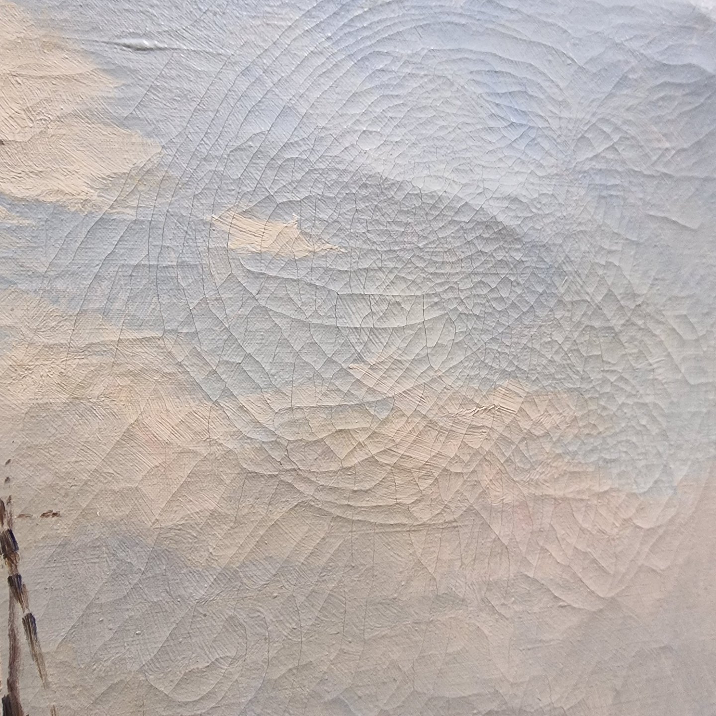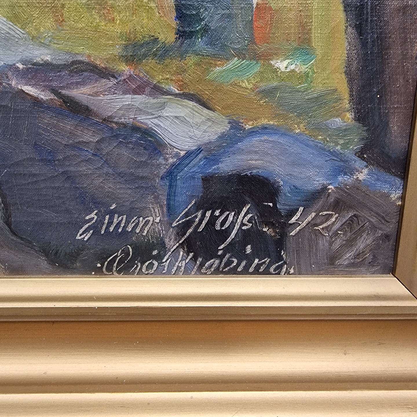 Maleri på lærred med motiv af havnen i Ærøskøbing. Dateret 1942