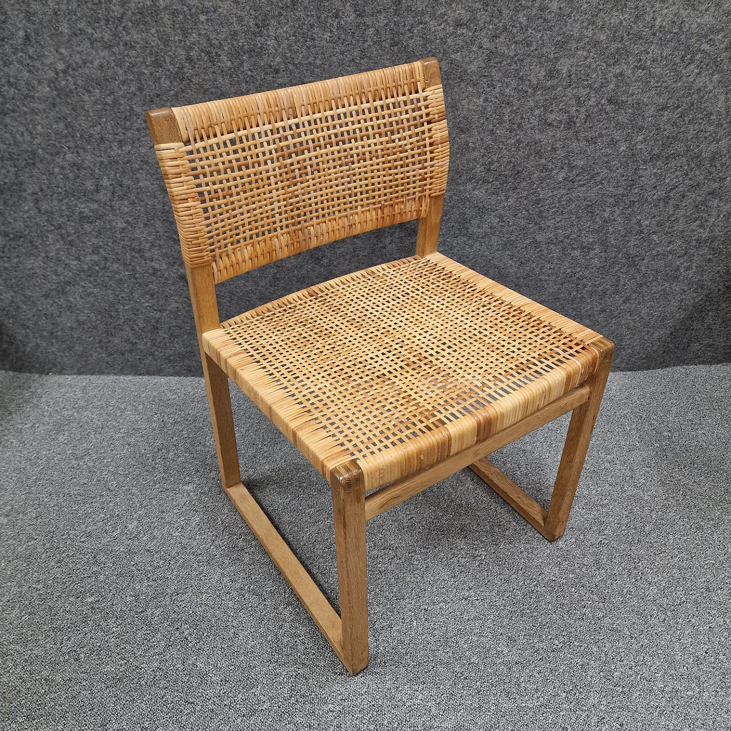 Cane Wicker spisebordsstol model BM61 med stel af massivt egetræ, sæde og ryg er sjeneflet. Designet i 1958