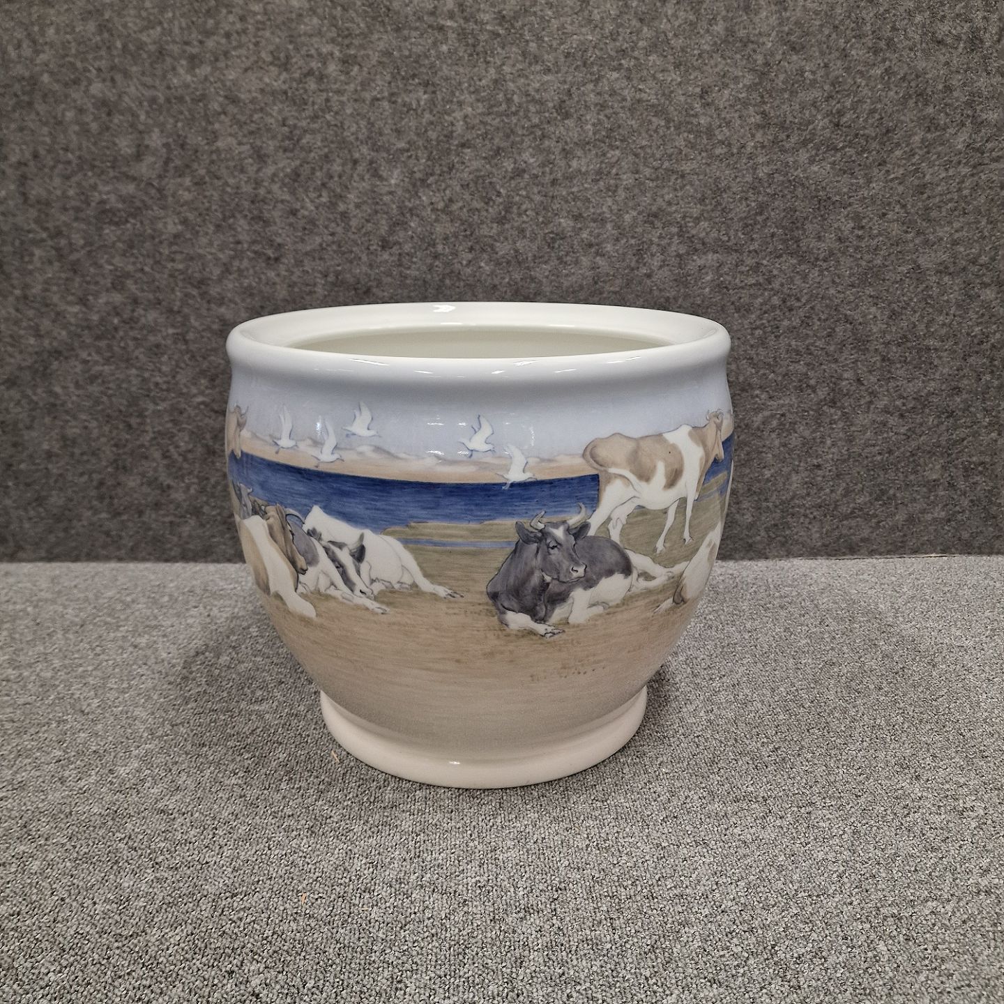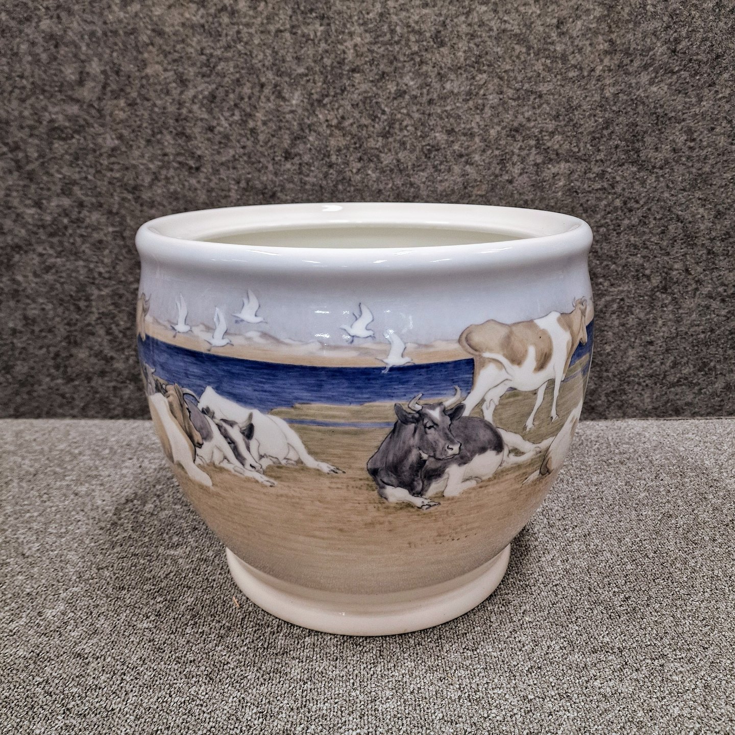 Art nouveau unika vase i porcelæn med motiv at køer og måger ved vandet. Nr 9/12 1916