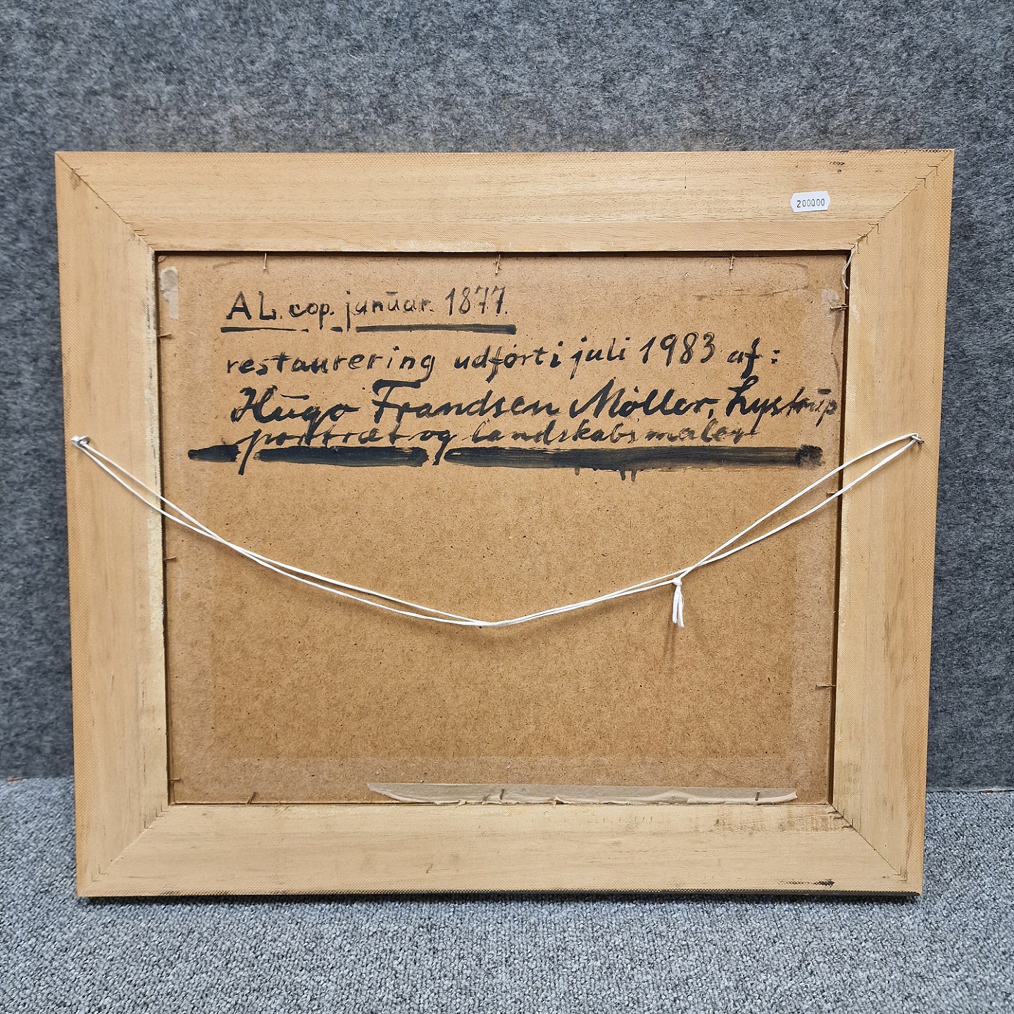 Maleri på plade med motiv af en Jersey ko. Dateret 1877