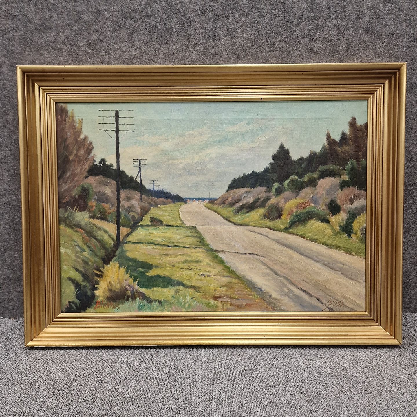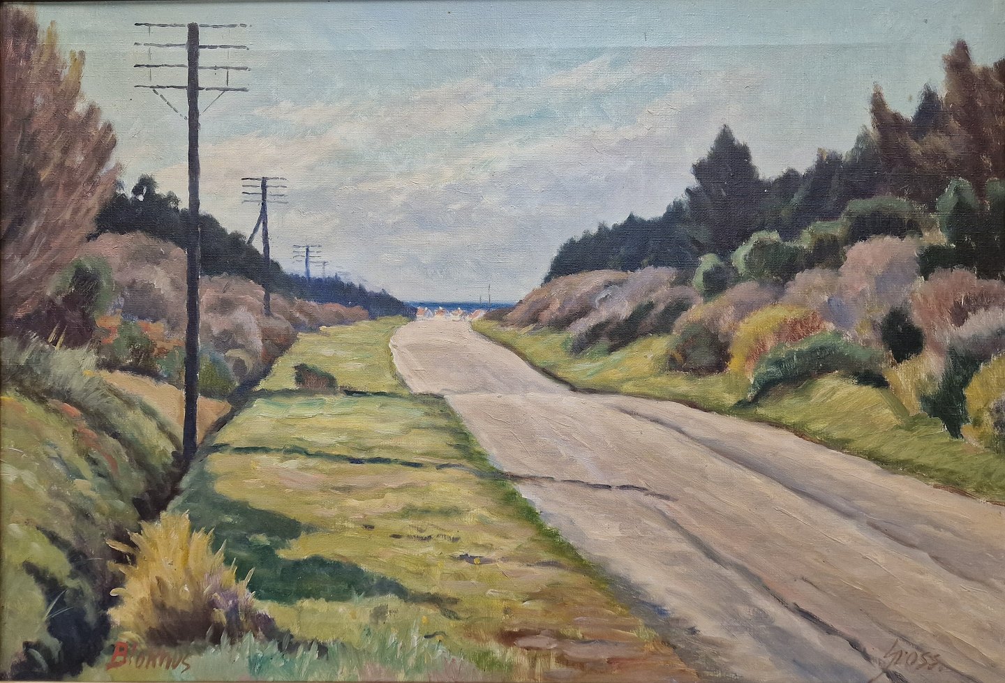 Oliemaleri på lærred. Landskabsmaleri med motiv af landvej til Blokhus strand