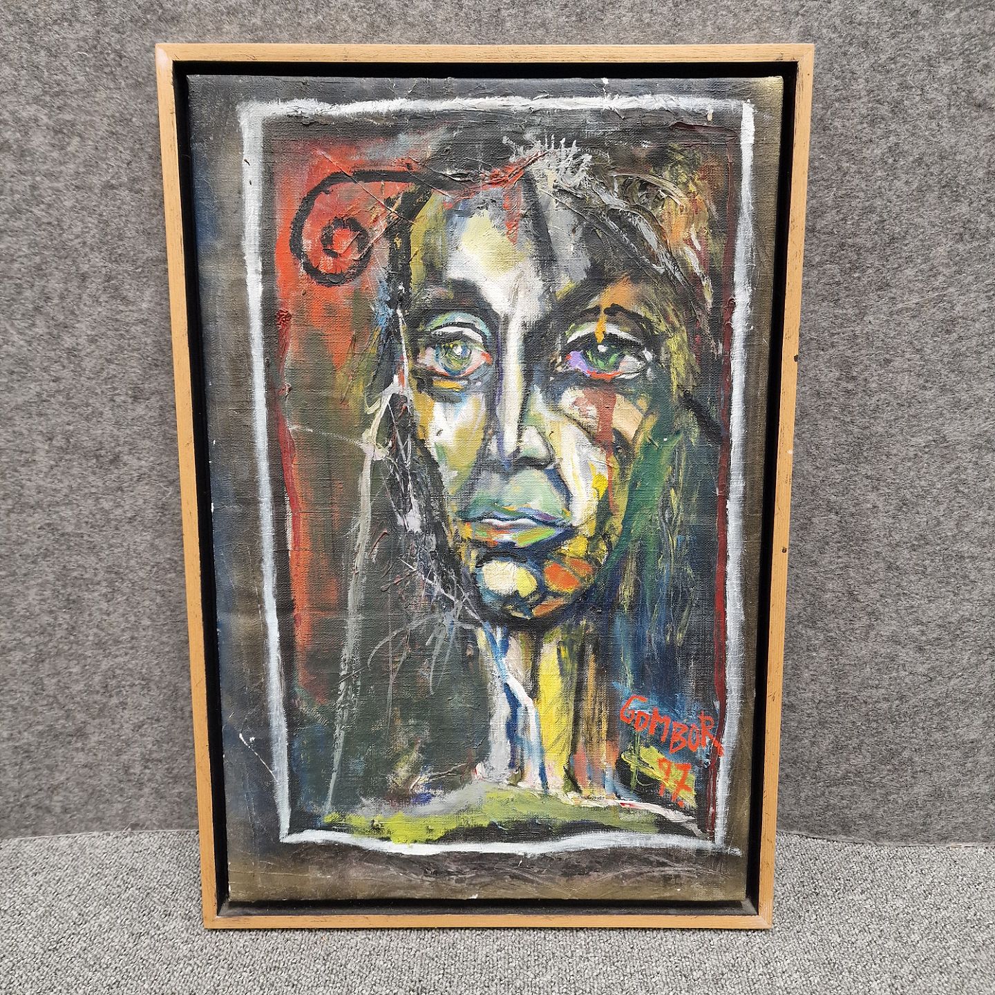 Oliemaleri på lærred. Multifarvet impressionistisk portrætmaleri af kvinde
