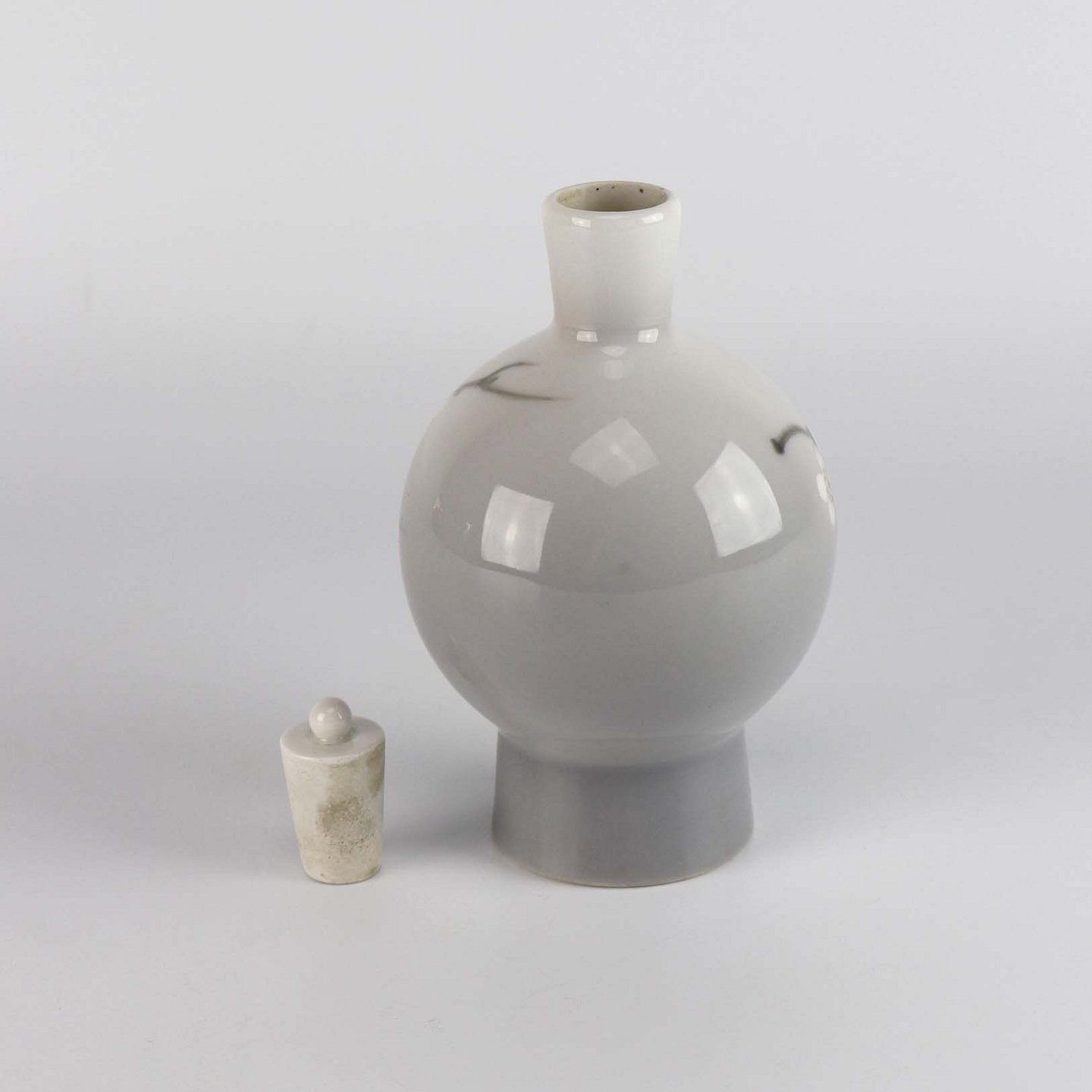 Rund vase og flakon i porcelæn med prop med motiv af blomster på grene nr 383