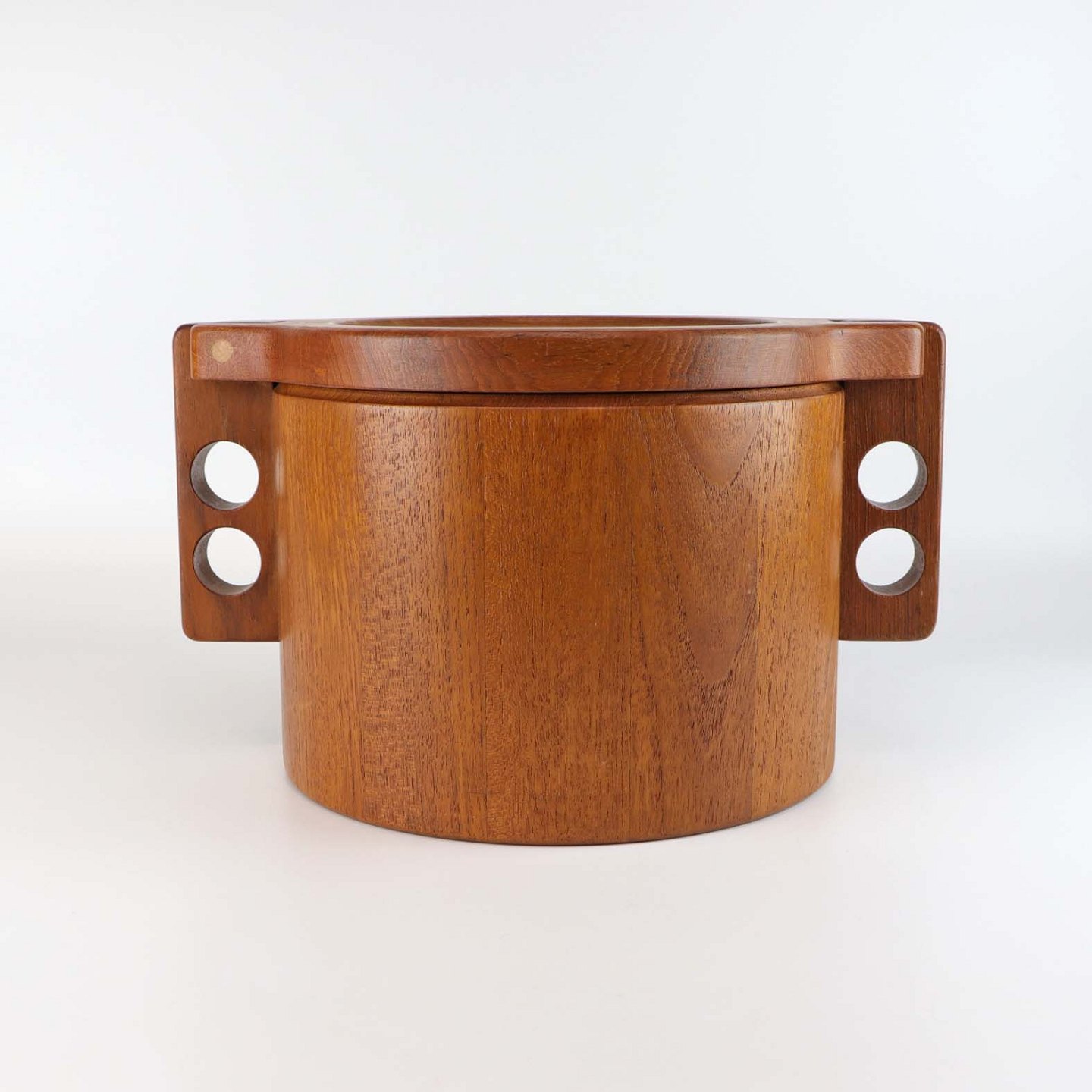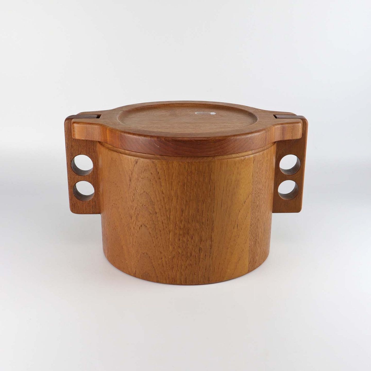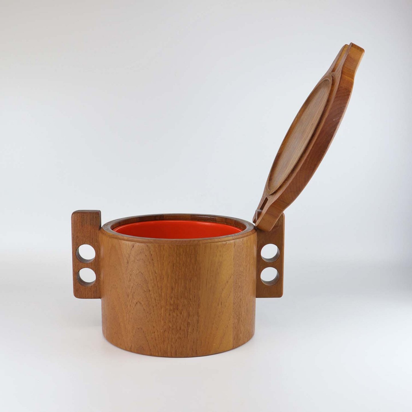 Isspand i teaktræ med håndtag og udtagelig to liters spand i orange plast
