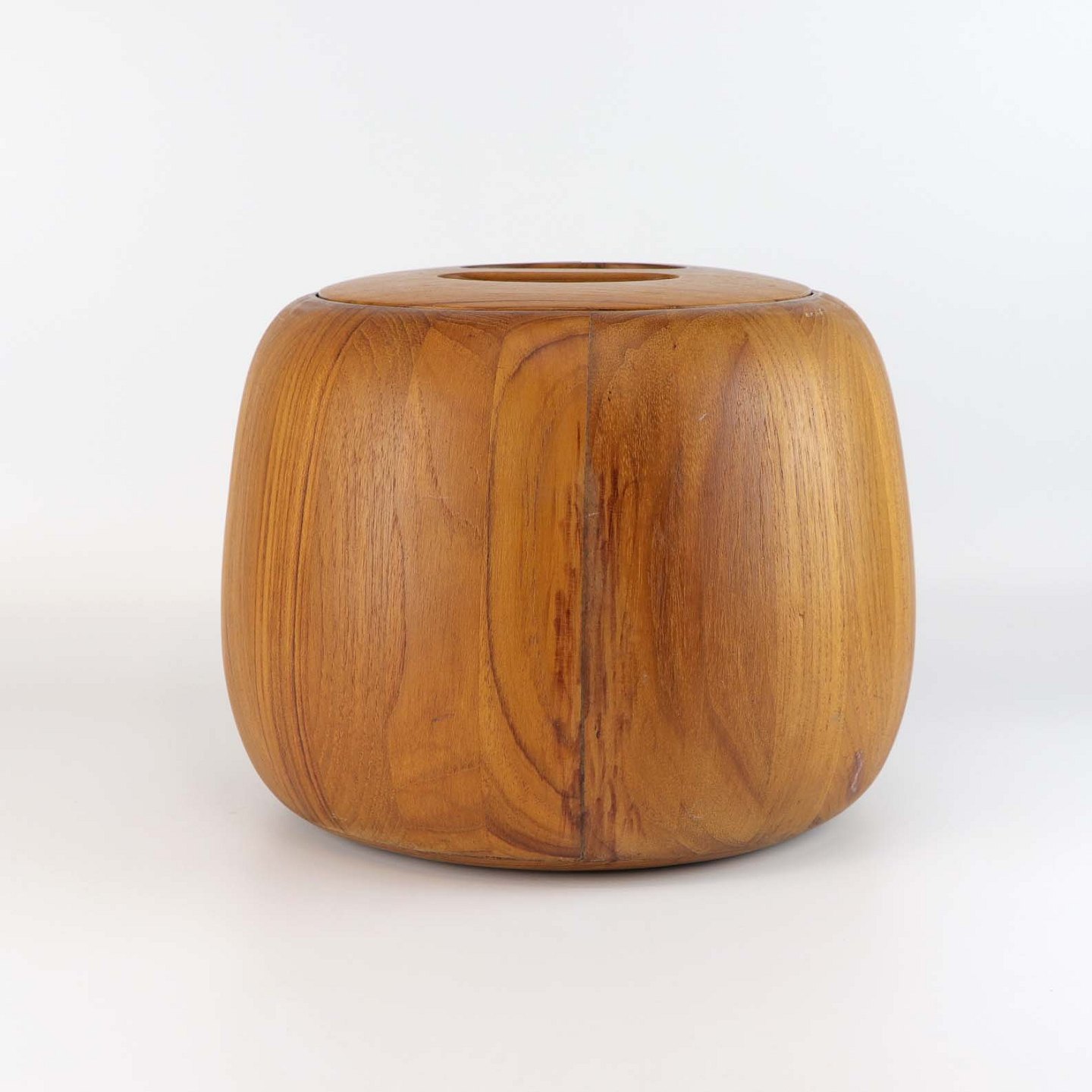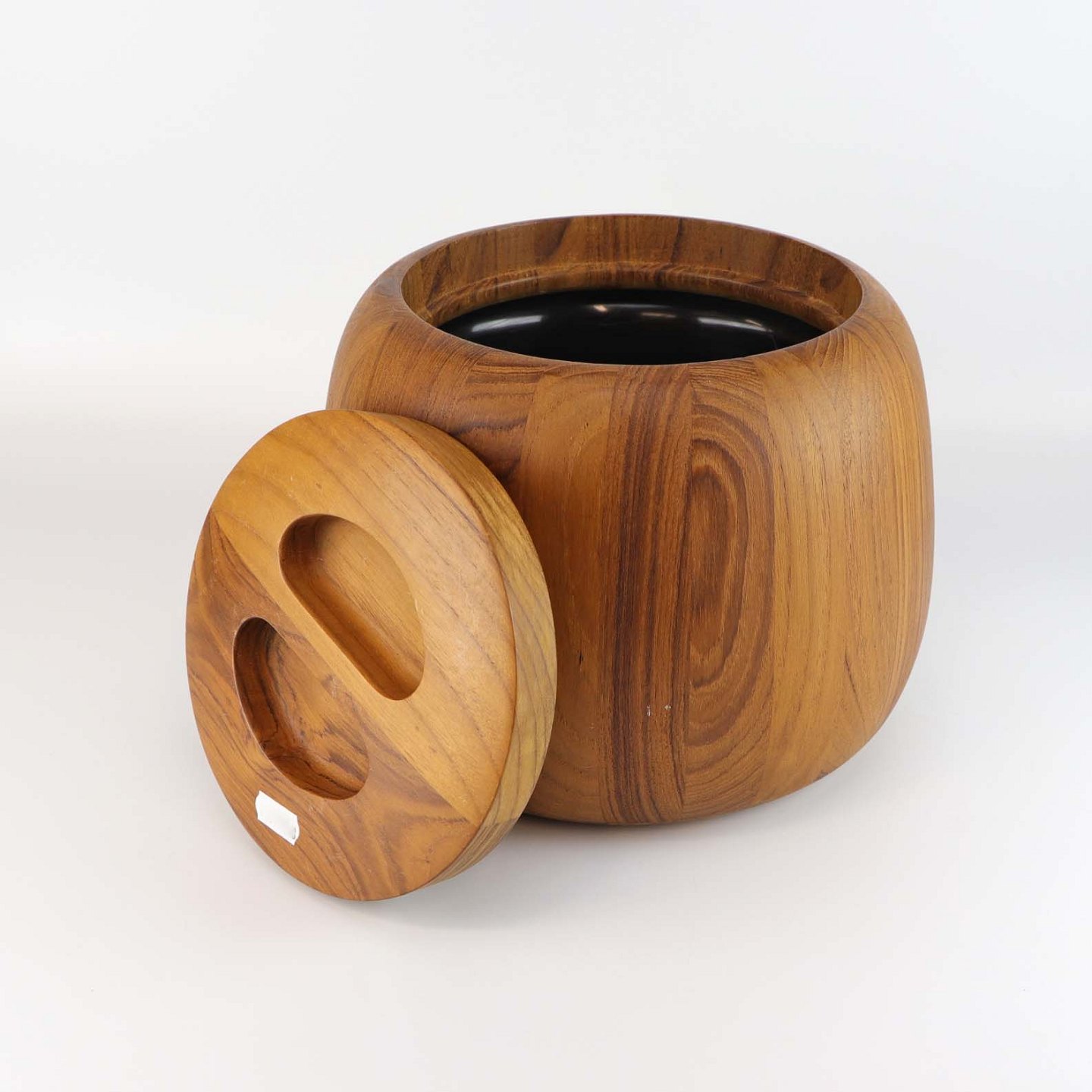 Rund isspand i teaktræ med indvendig spand i sort plast