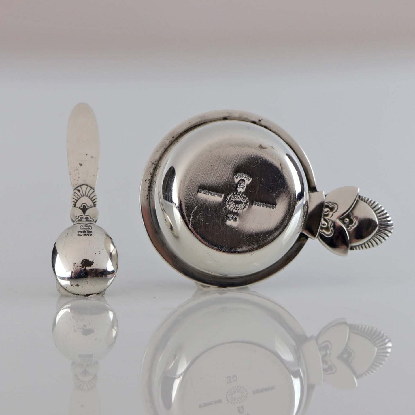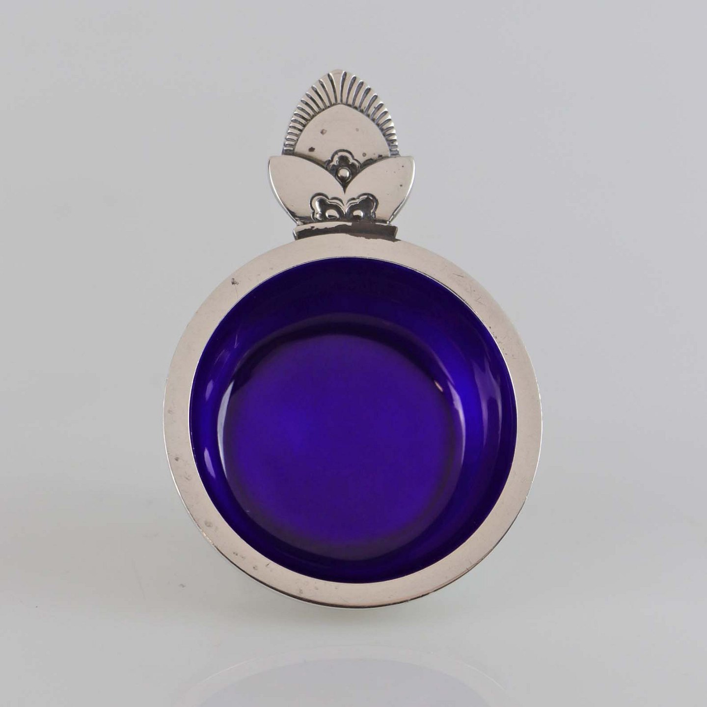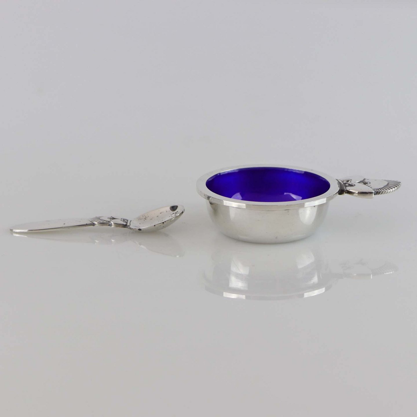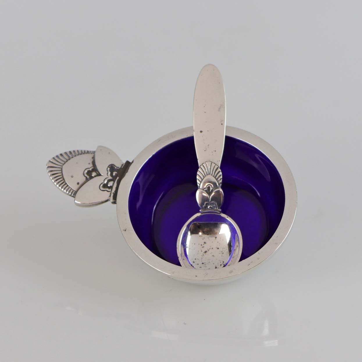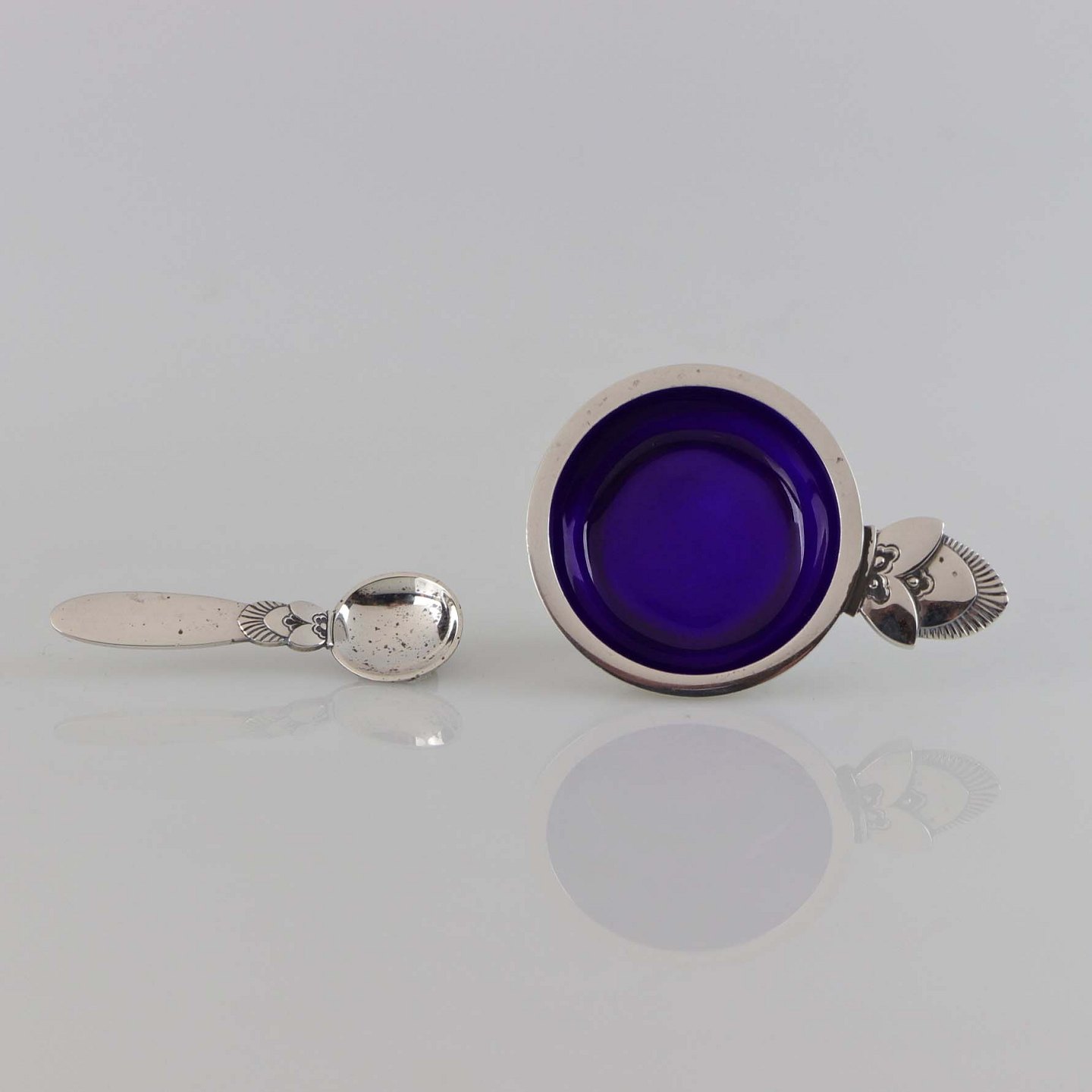 Salt skål med ske i sterling sølv med blå emalje nr 30