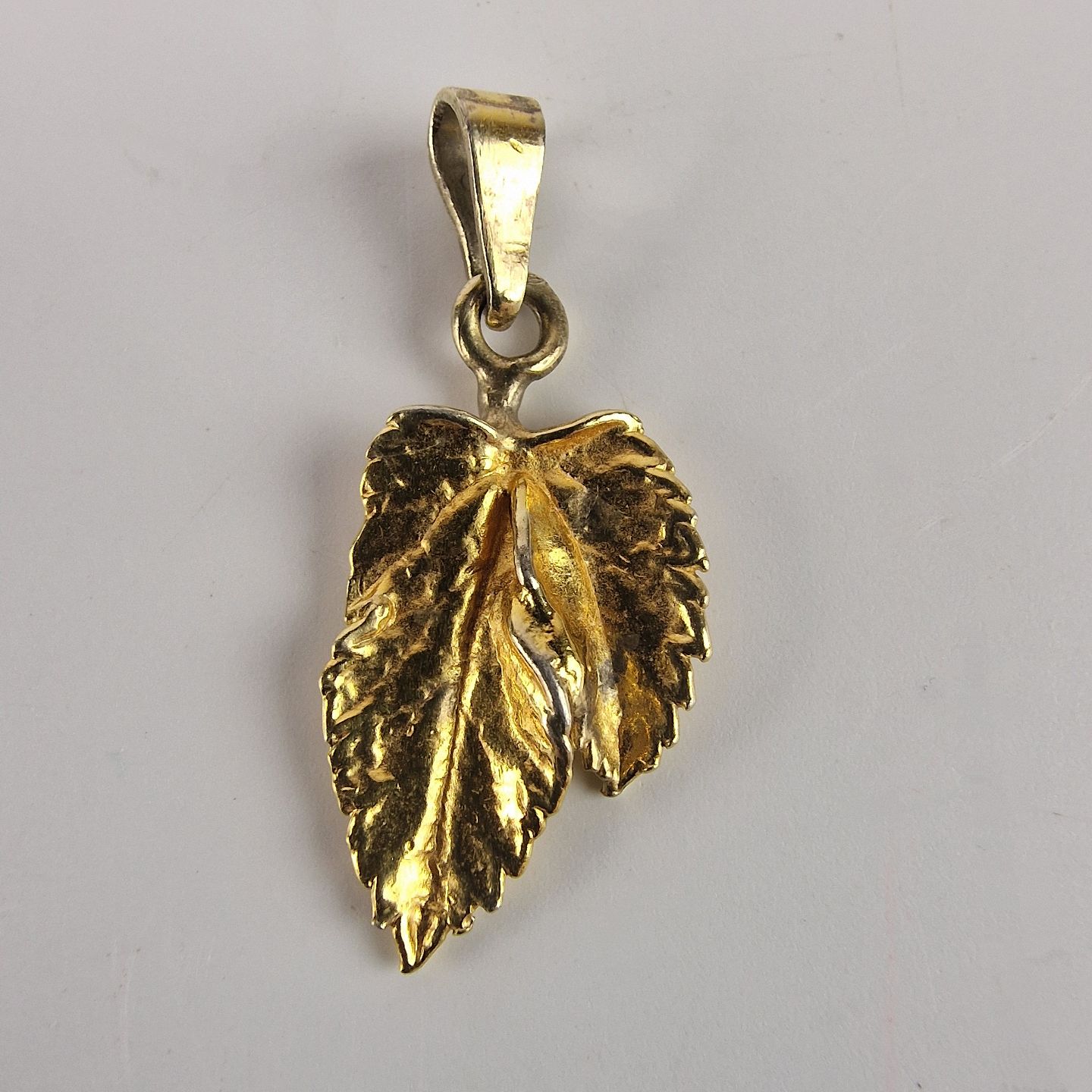 18 karat forgyldt sølv vedhæng formet som to bøgeblade