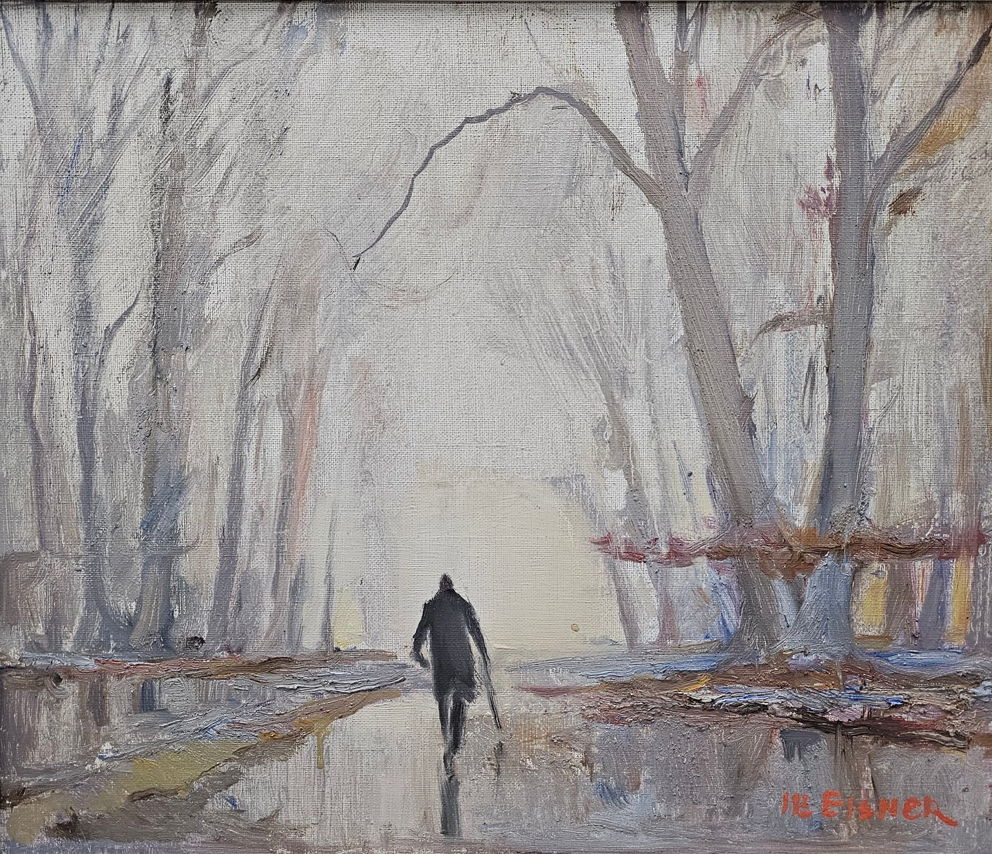 Maleri af oliemaling på lærred, med motiv af en person i en skov