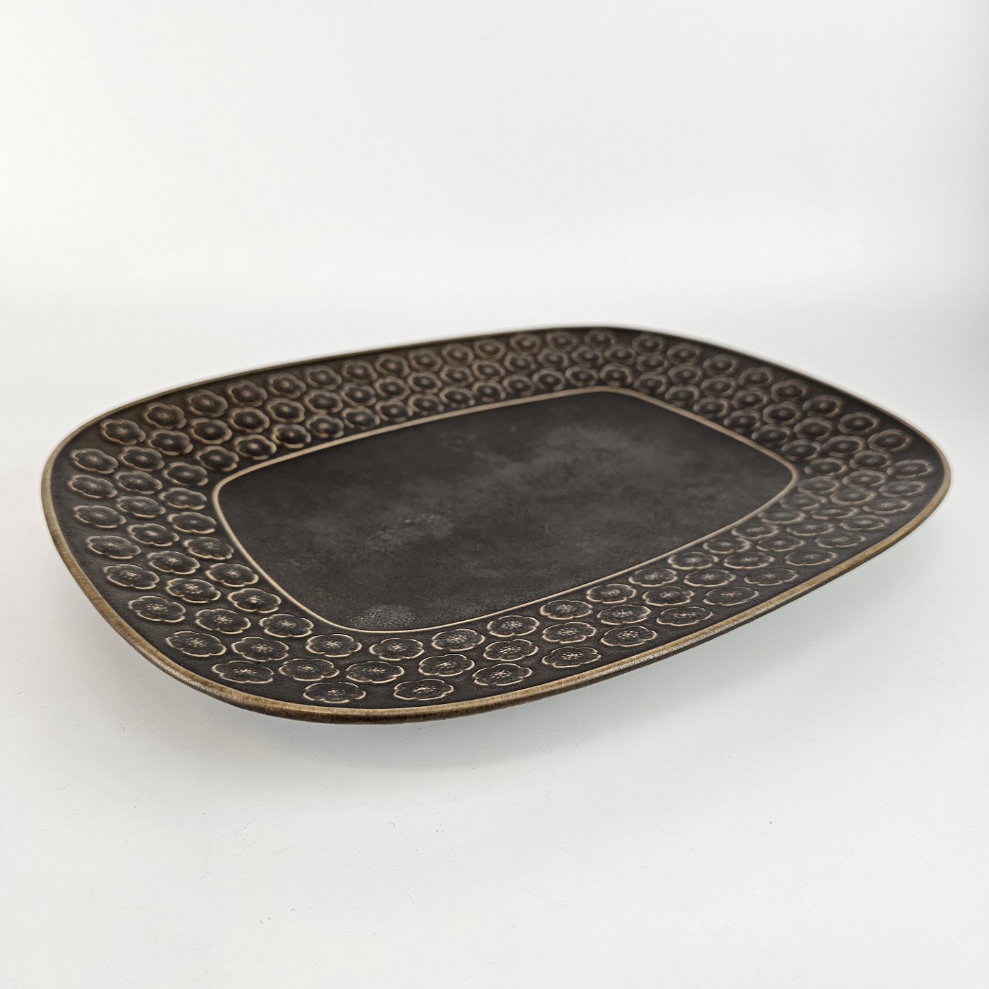 Rektangulært fad i stentøj fra stellet Umbra