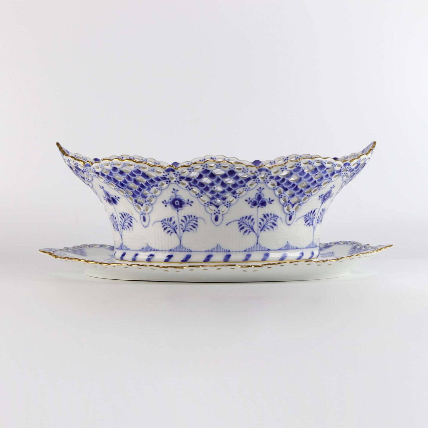 Frugtskål med fad i porcelæn med guldkant fra stellet Musselmalet helblonde nr 1/1059 og 1/1060