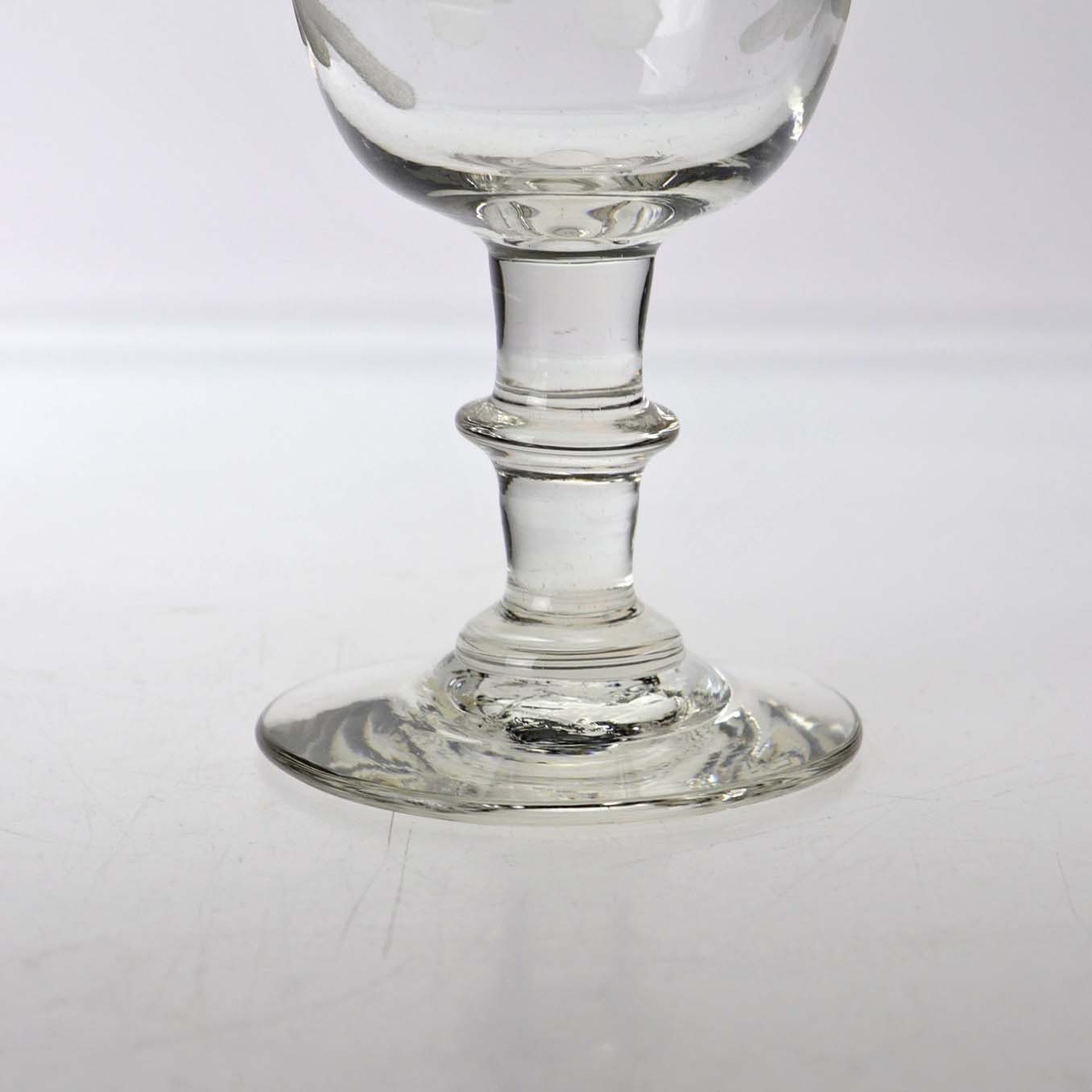 Antik hedvinsglas med egeløv slibning