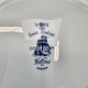 Hvidt porcelæn dekoreret med delikate blå blomster og mønster med blade