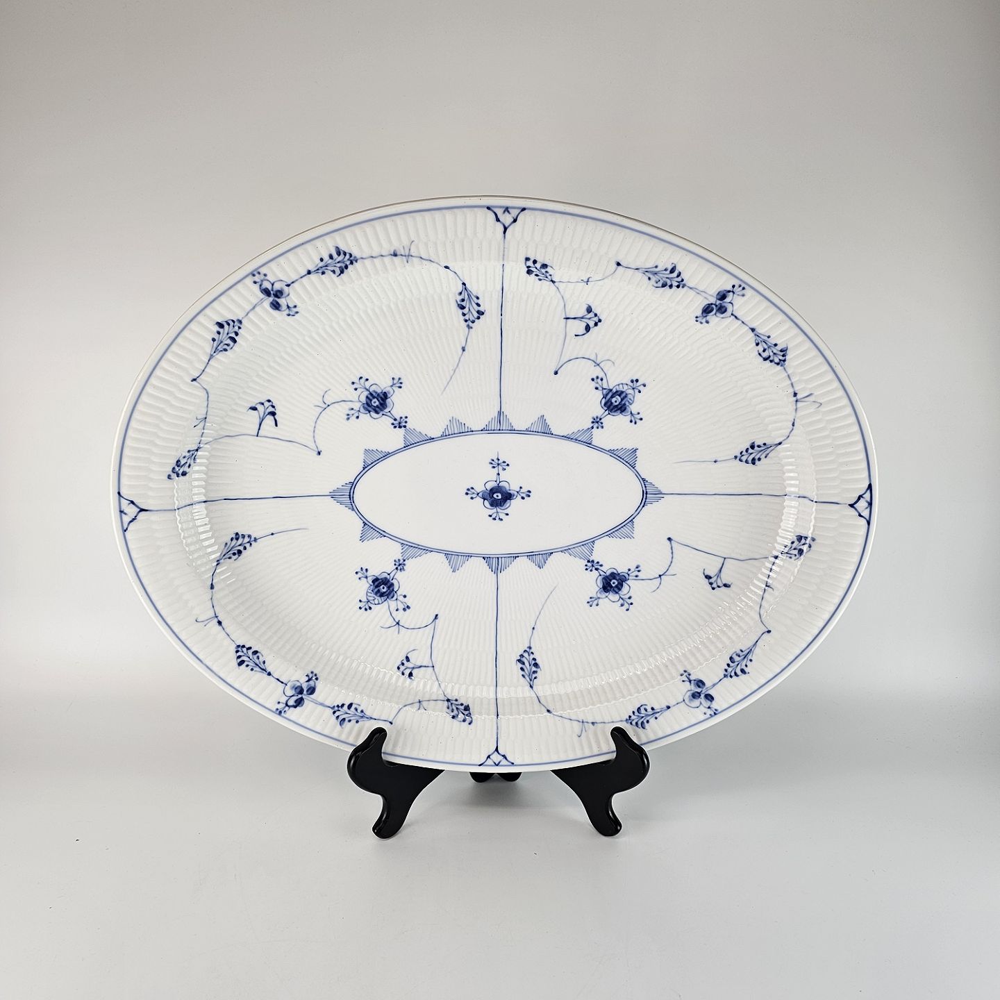 Kgl. ovalt serveringsfad fra stellet Musselmalet riflet nr. 1/102