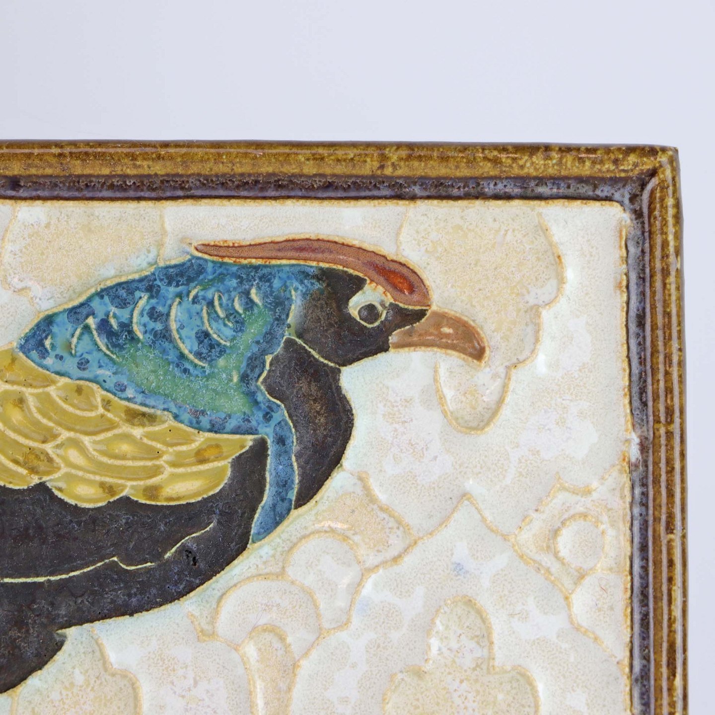 Hollandsk relief i stentøj med motiv af påfugl