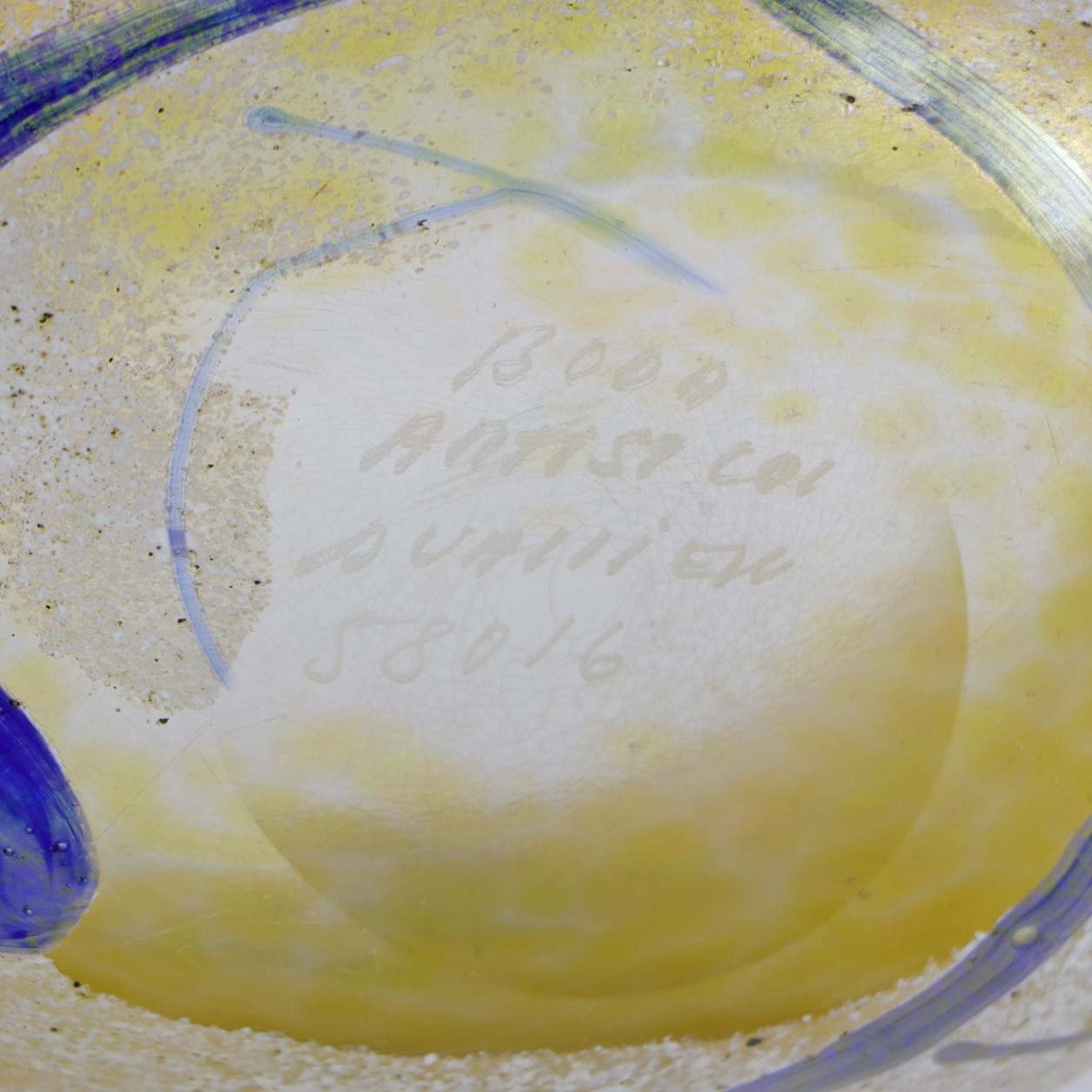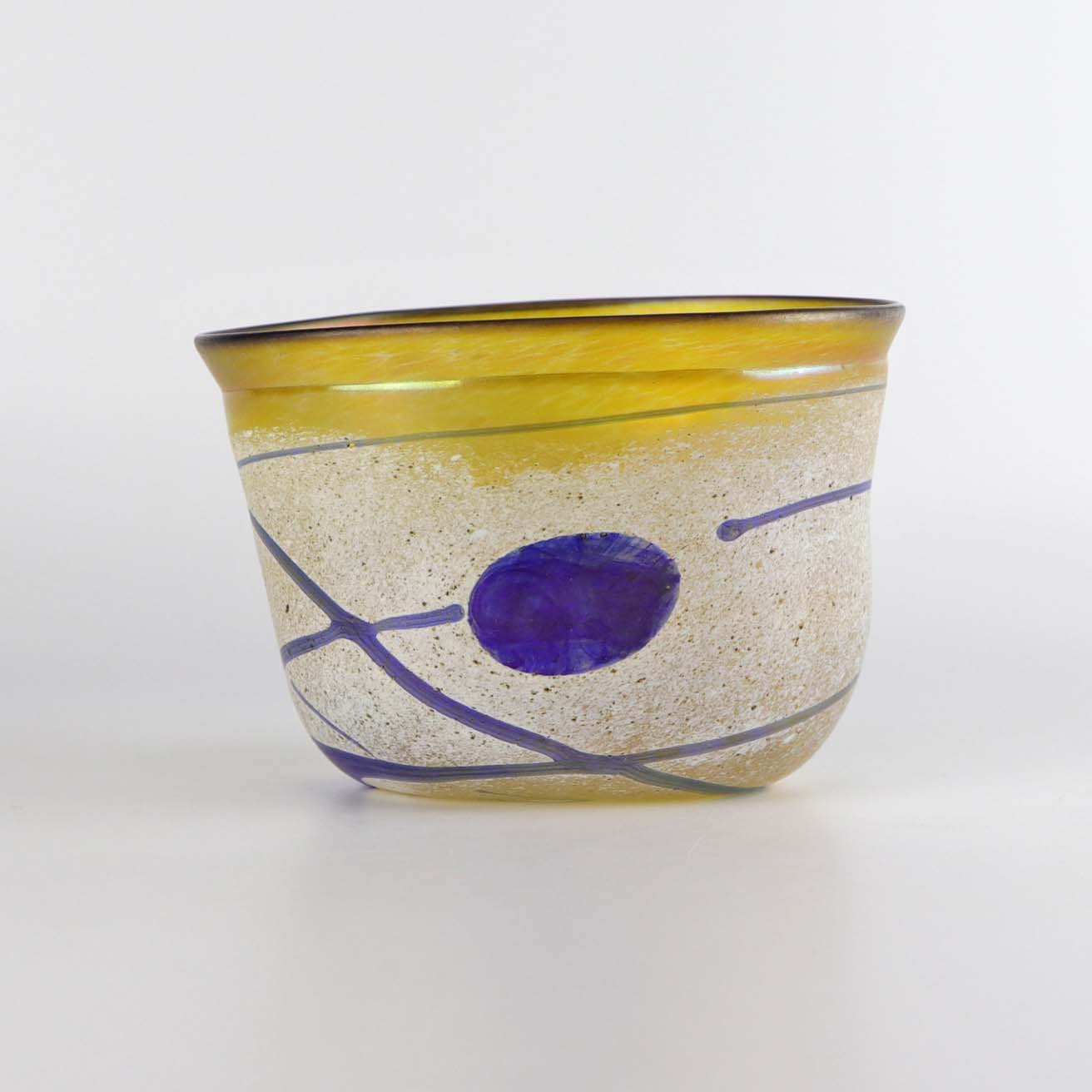 Asymmetrisk vase i kunstglas fra serien Artist collection i hvide, blå og gule nuancer nr. 58016