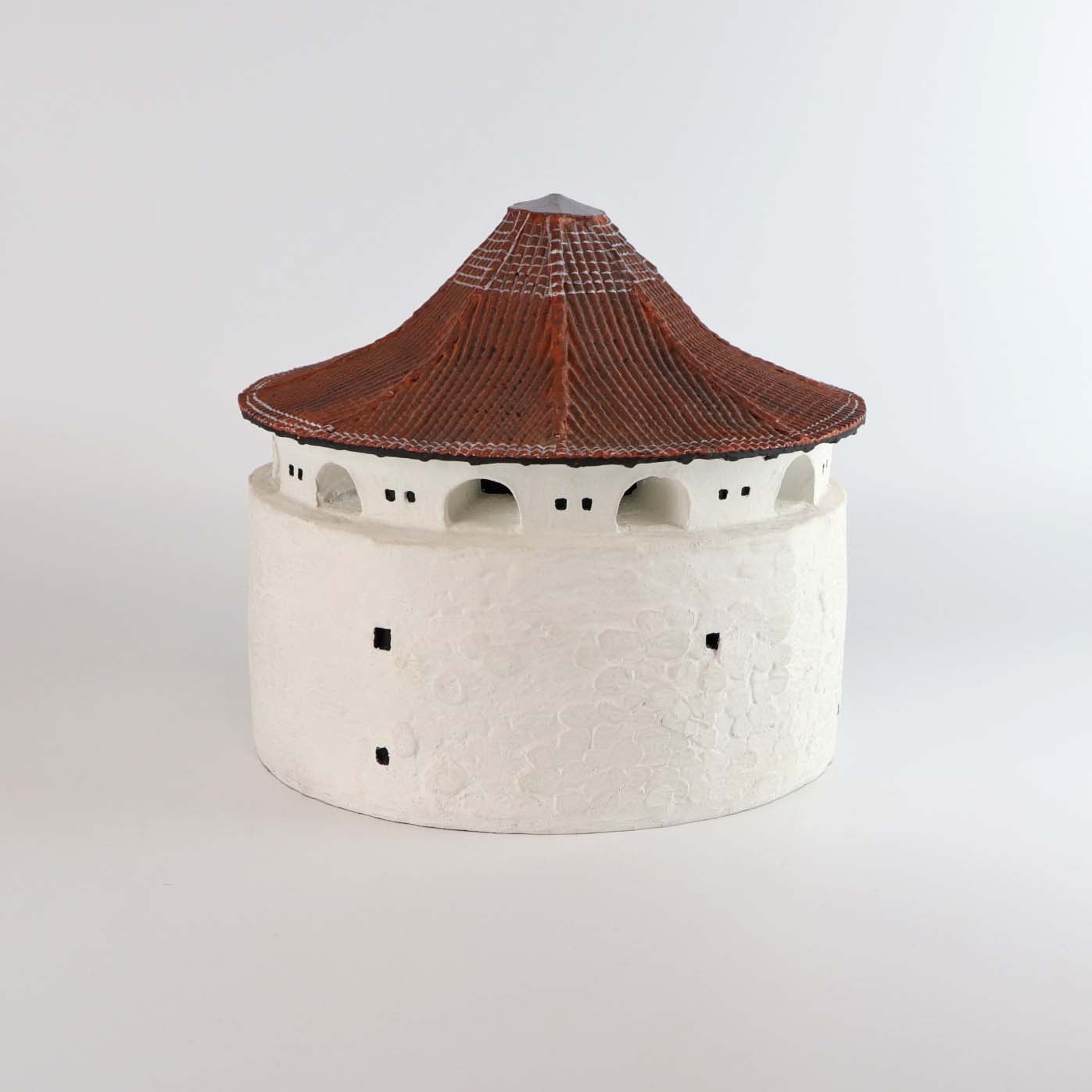 Miniature model i boks af Krudttårnet i Frederikshavn model 54.1