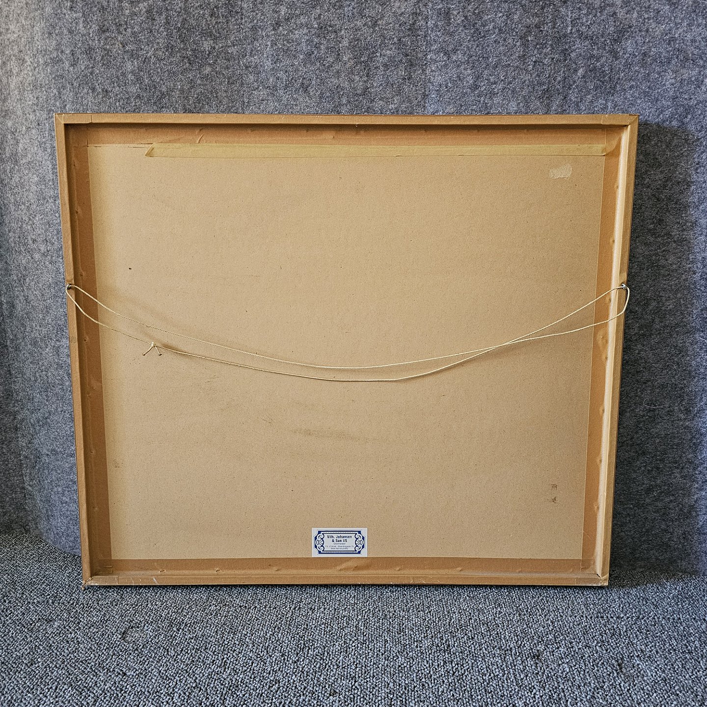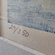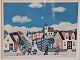Indrammet litografi med passepartout i sølvmalet træramme med motiv af landsby og kirke nr. 29/350