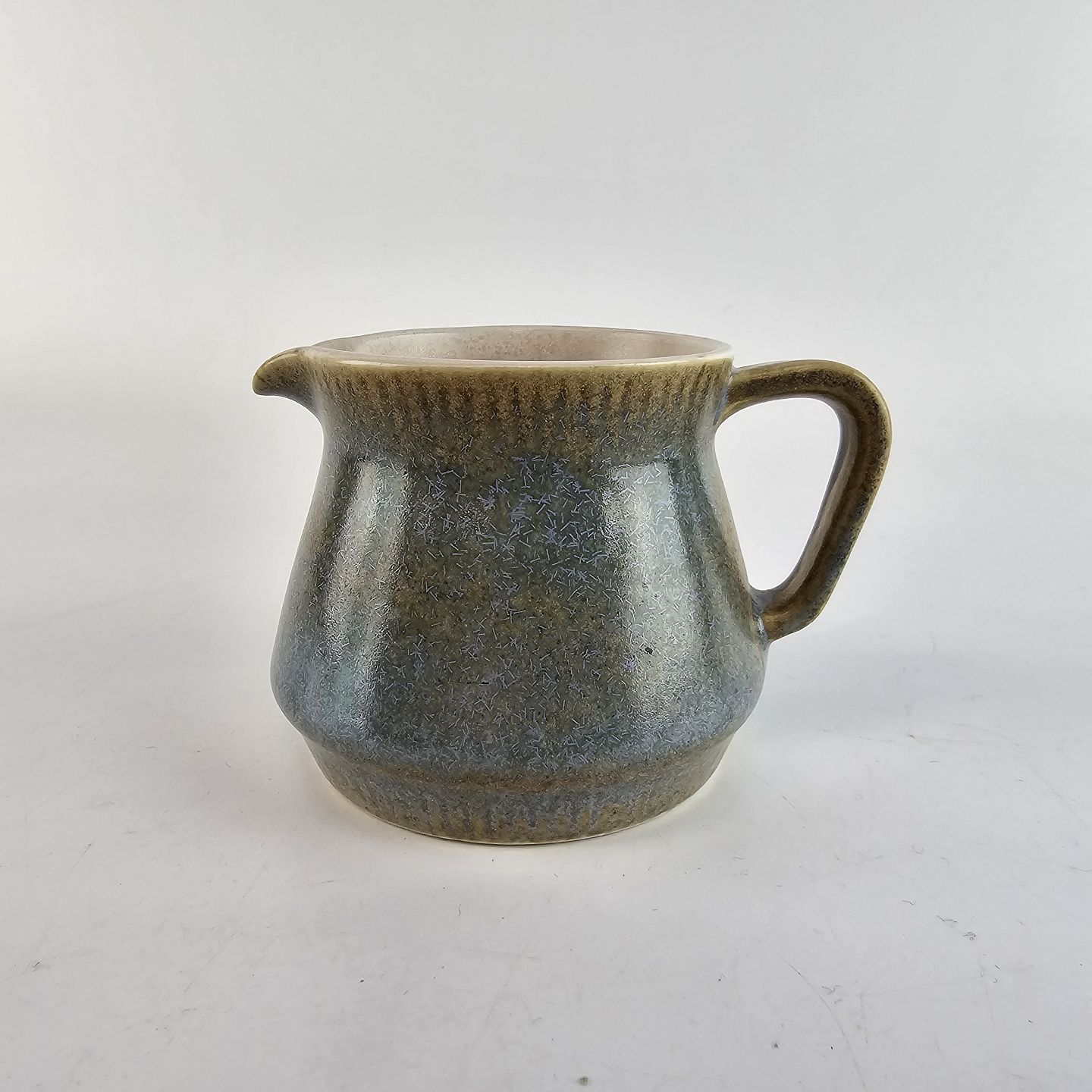 Flødekande af stentøj og dekoreret med en grønlig nuancefarvet glasering.