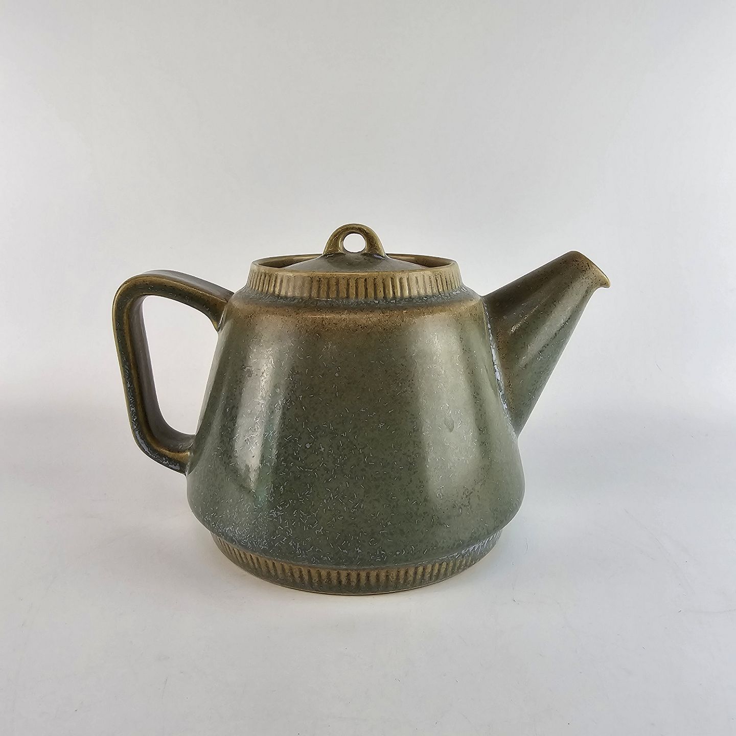Tekande med låg af stentøj og dekoreret med en grønlig nuancefarvet glasering. Fra serien Knabstrup - ofte kaldet Grøn Nøddebo