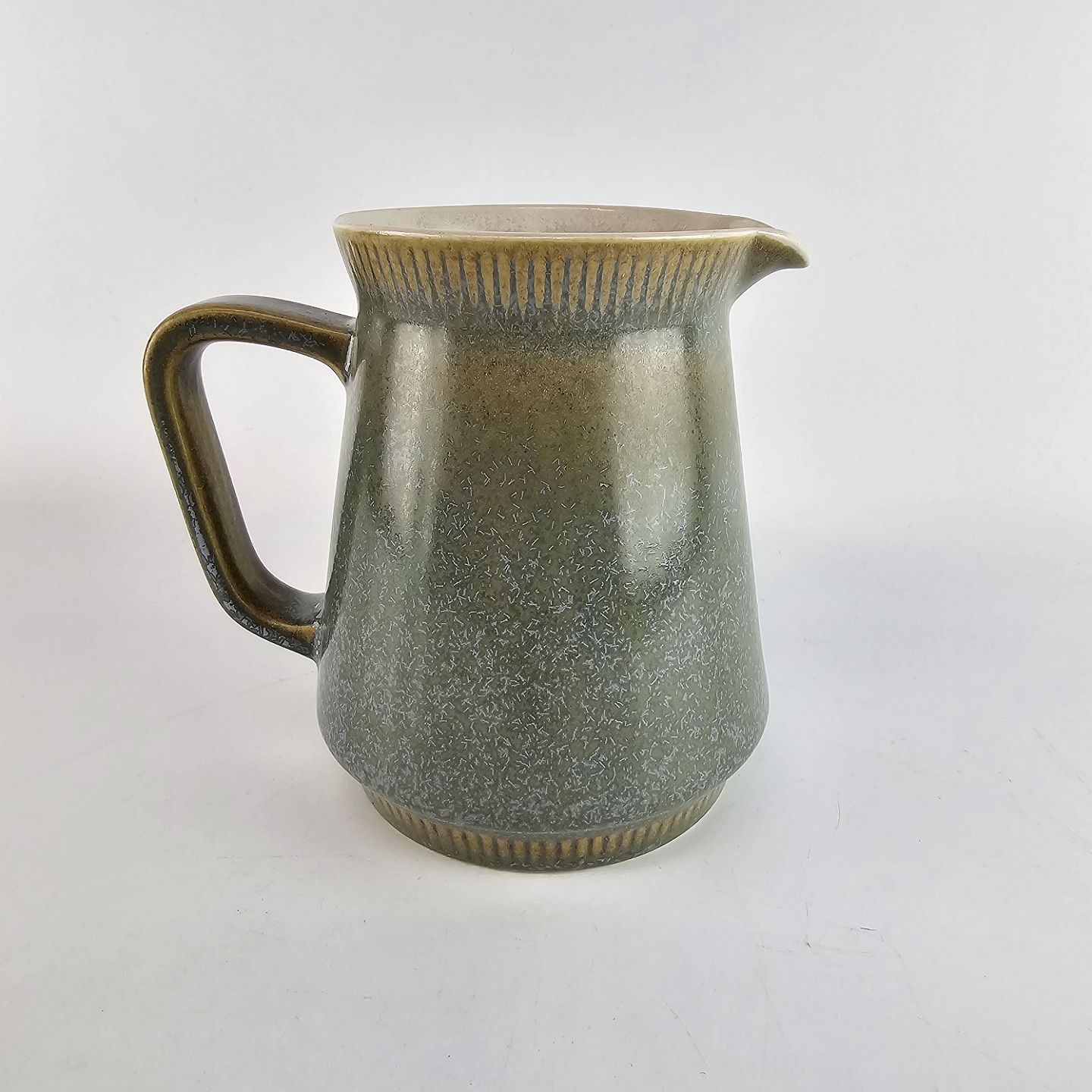 Kande af stentøj og dekoreret med en grønlig nuancefarvet glasering.