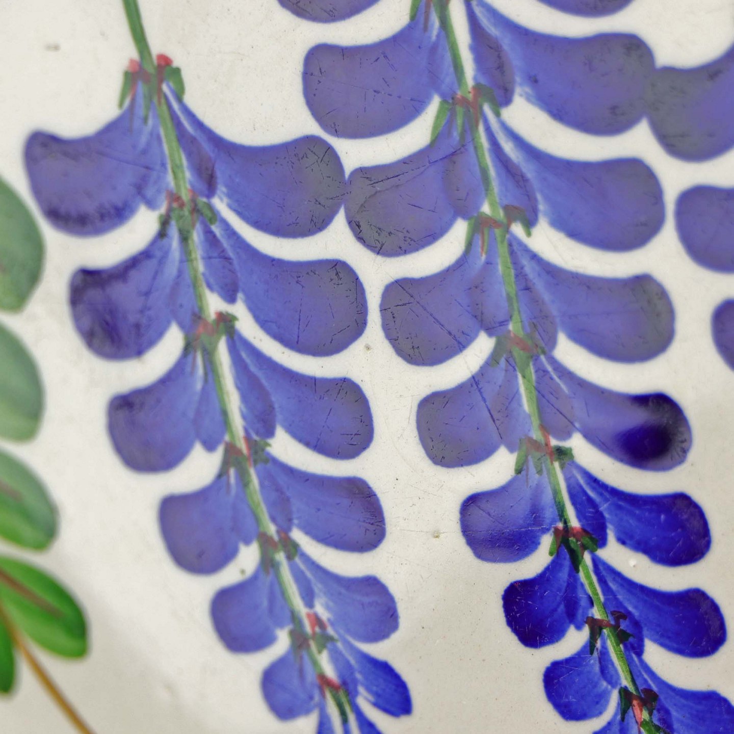 Blåregn er af fajance, glaseret hvidt og med dekorationer af blåregn og grønne blade