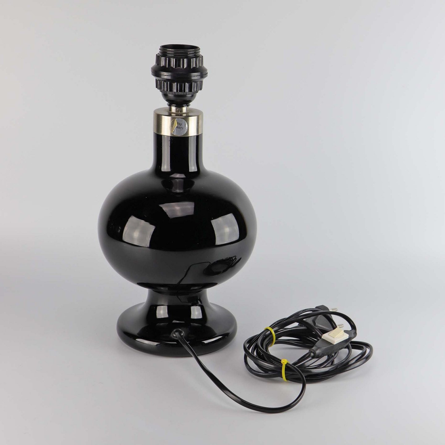 Bordlampe i mundblæst sort glas. Sort ledning og sort fatning