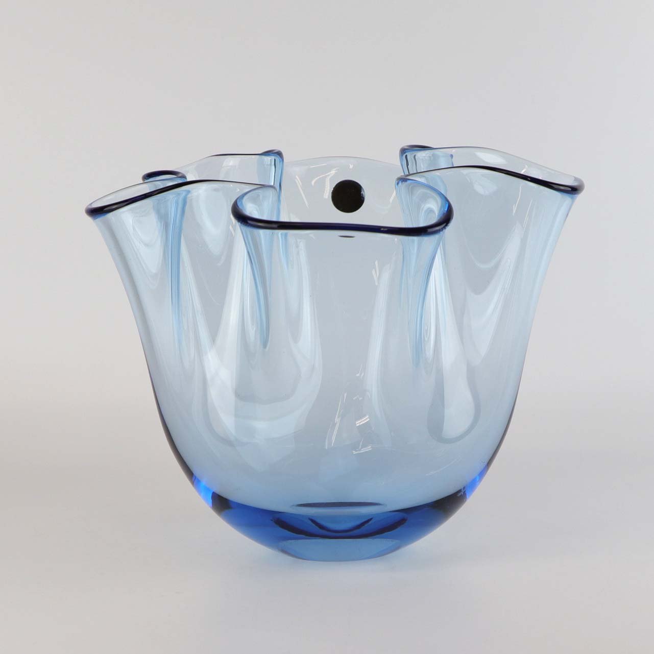 Skål i søblå glas model Laguna i størrelsen lille. Glasskålen leveres med original æske.