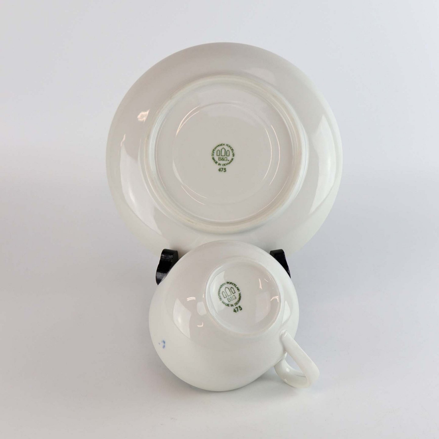 Tekop i porcelæn med underkop fra stellet Blå Koppel. Nr. 475