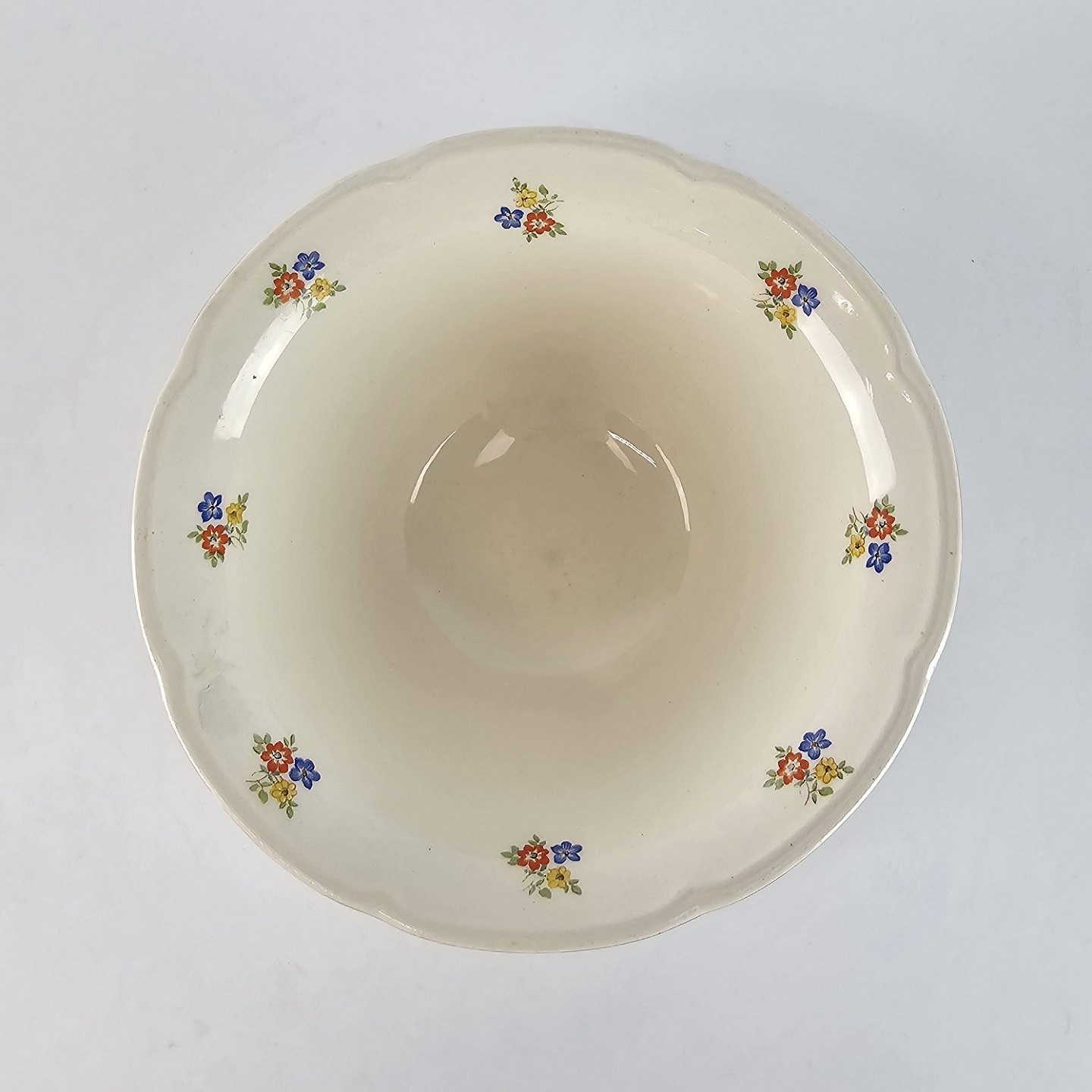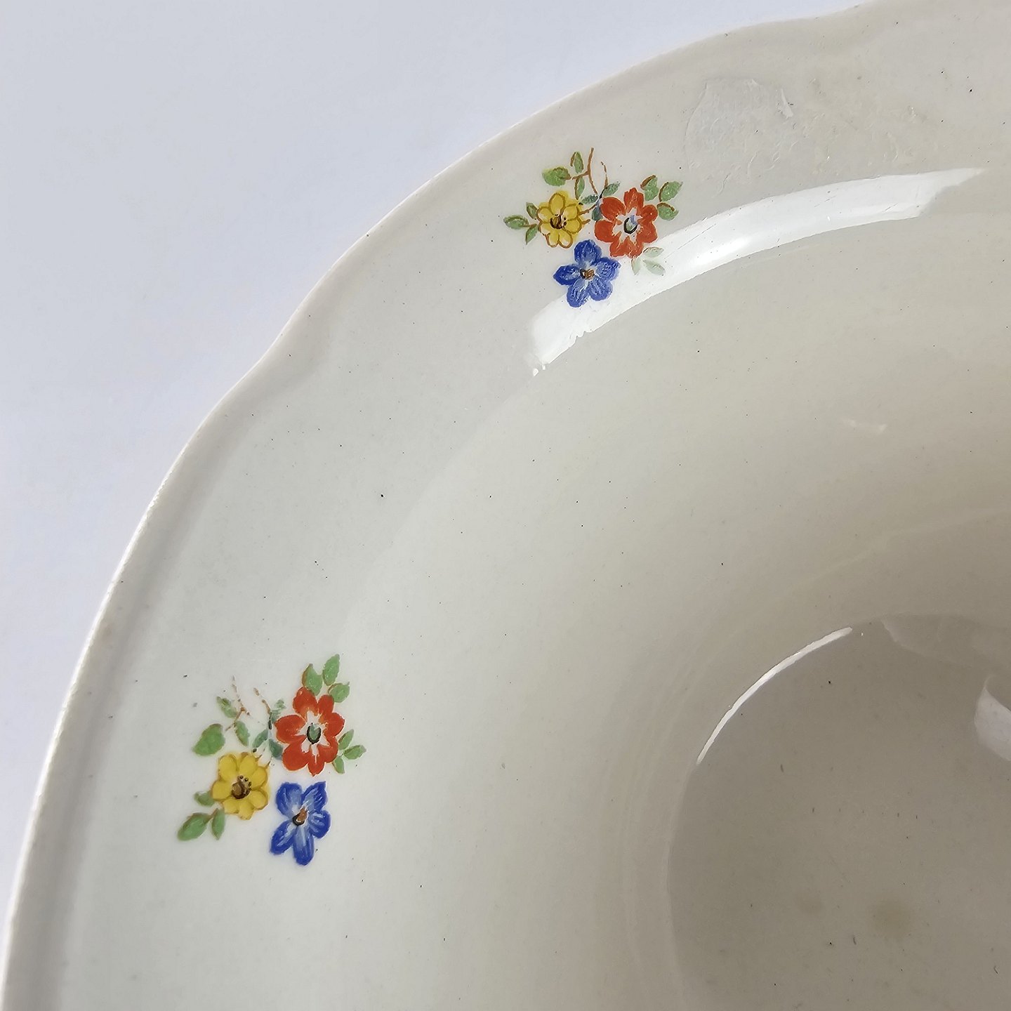 Anna Sofie er hvidt fajance dekoreret med guld kant og små farverige blomster
