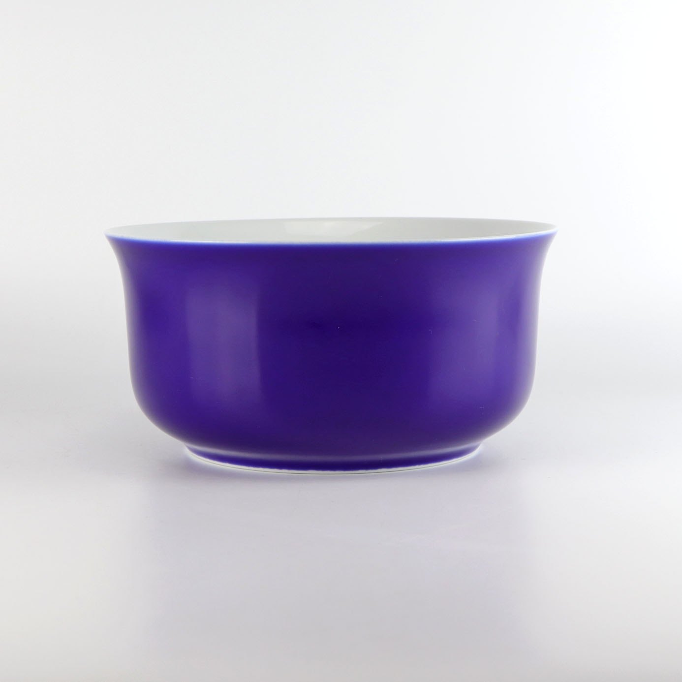 Blå Polar er af porcelæn, med glansfuld blå glasur på ydersiden og hvid glasur på indersiden