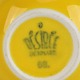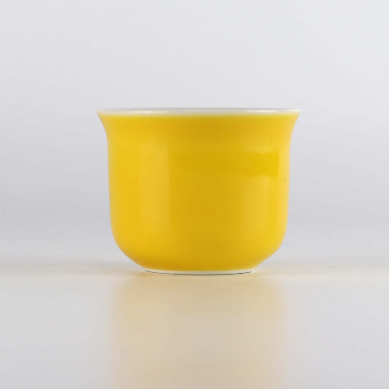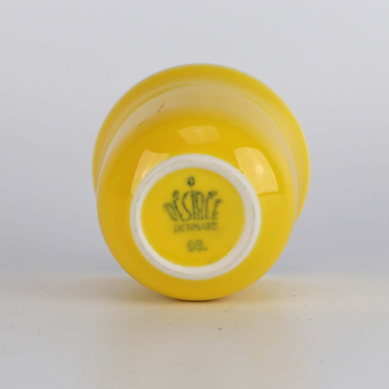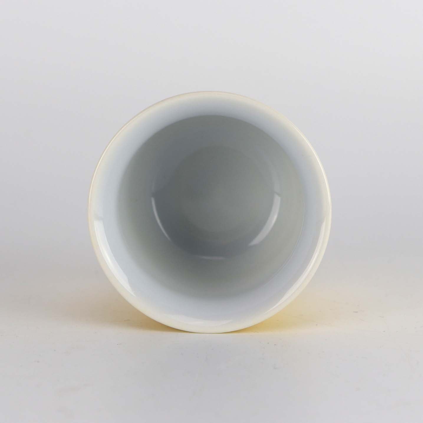 Bæger af porcelæn, med glansfuldt gult glasur på ydersiden og hvid glasur på indersiden
