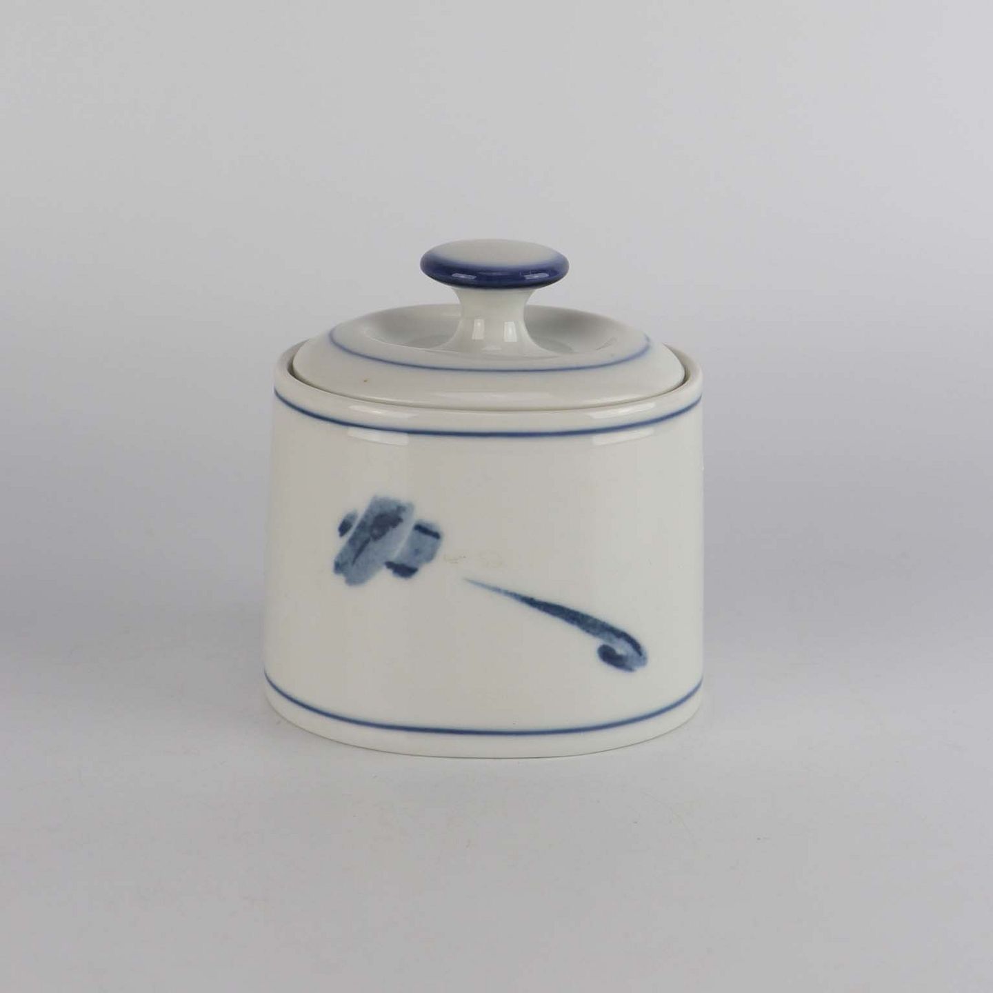 Sukkerkrukke med låg fra stellet Cumulus. Nr. 302