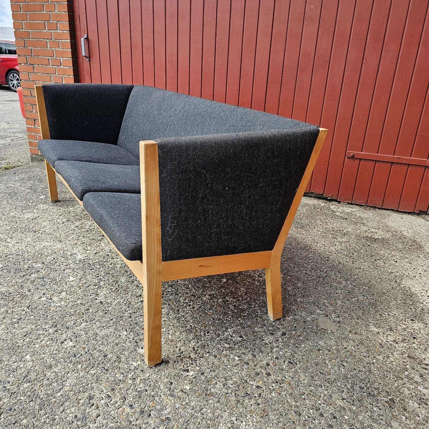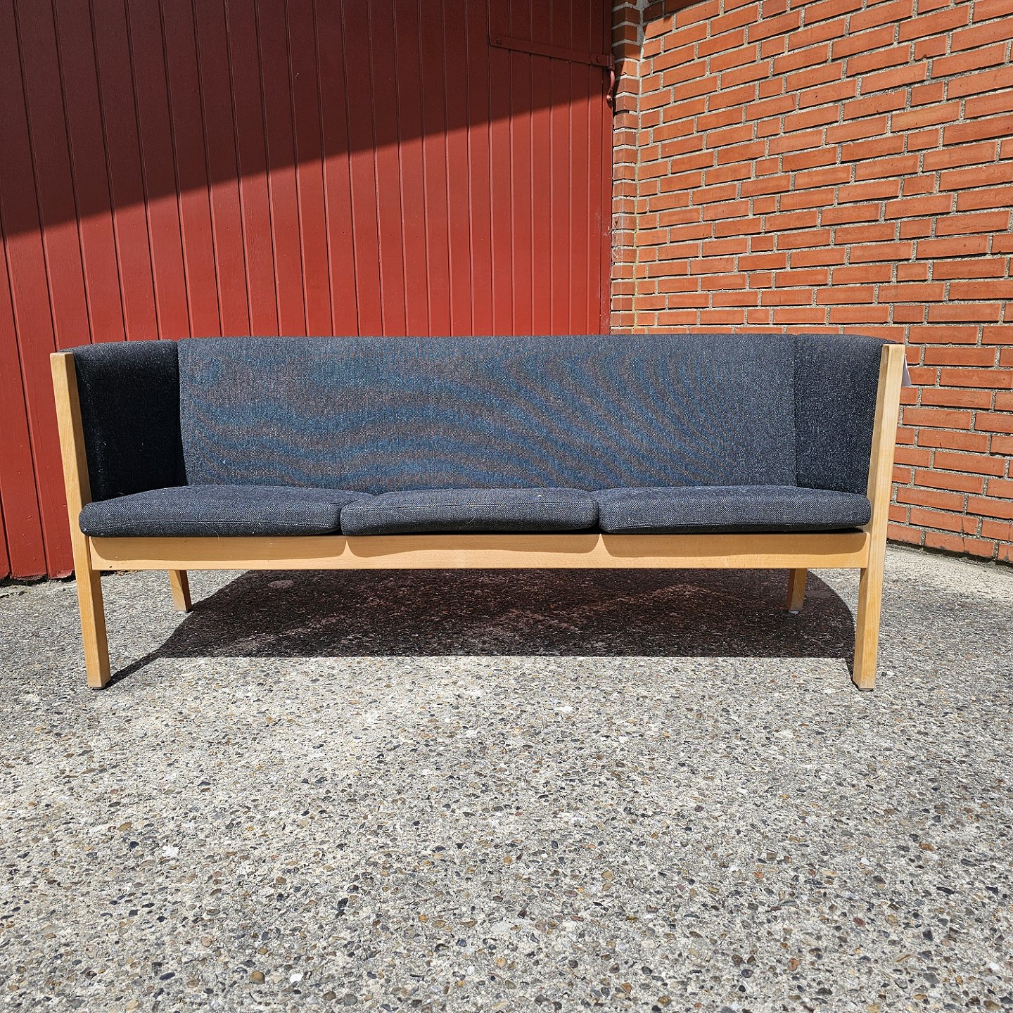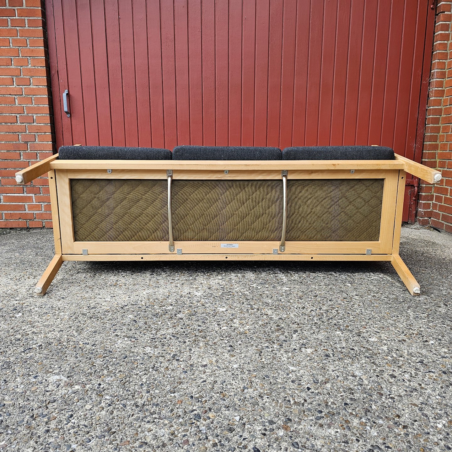 Grå trepersoners bøge sofa polstret i Hallingdal 180. Med original læbel. Model GE-285
