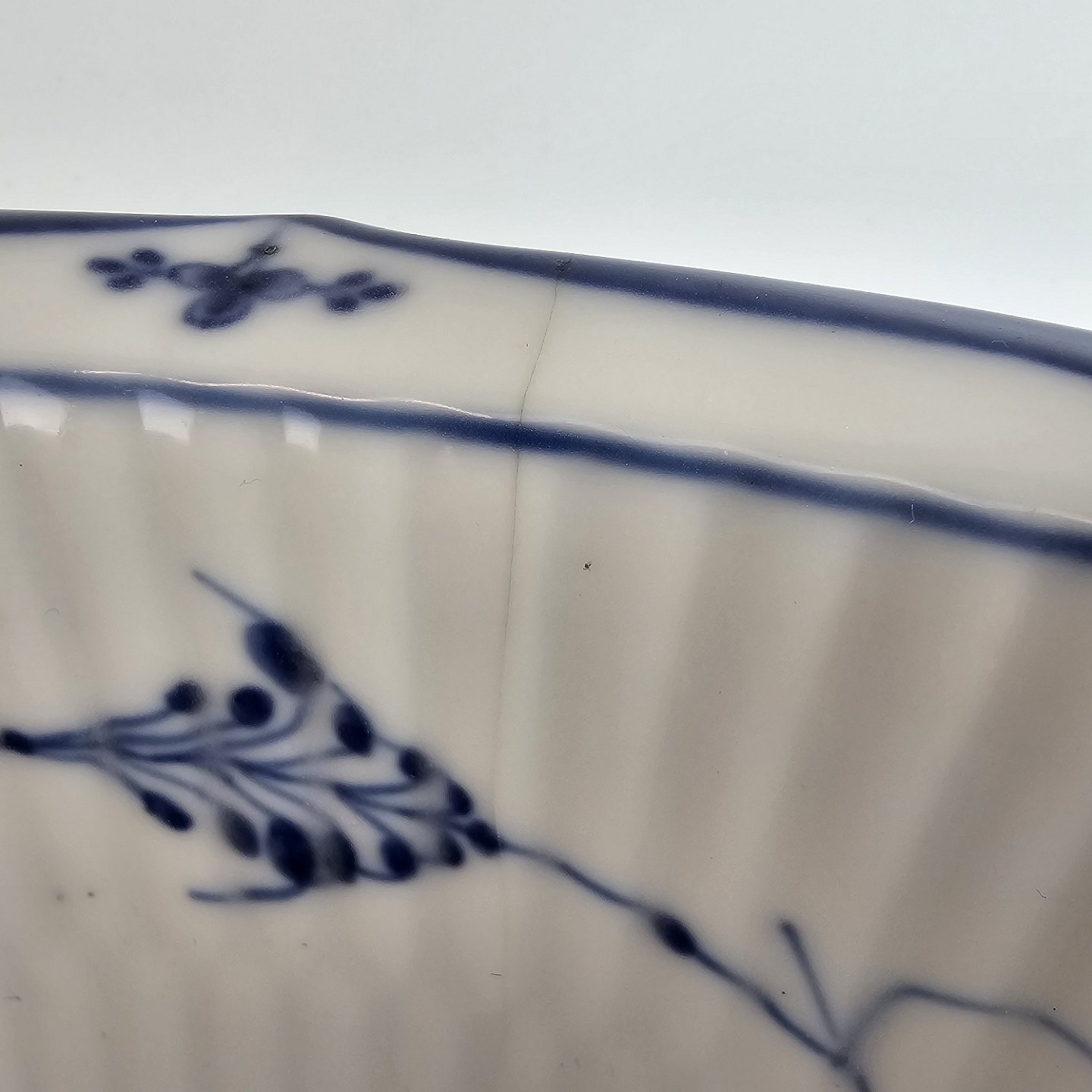 Stor meget sjælden kongelig servanteskål i riflet Musselmalet.